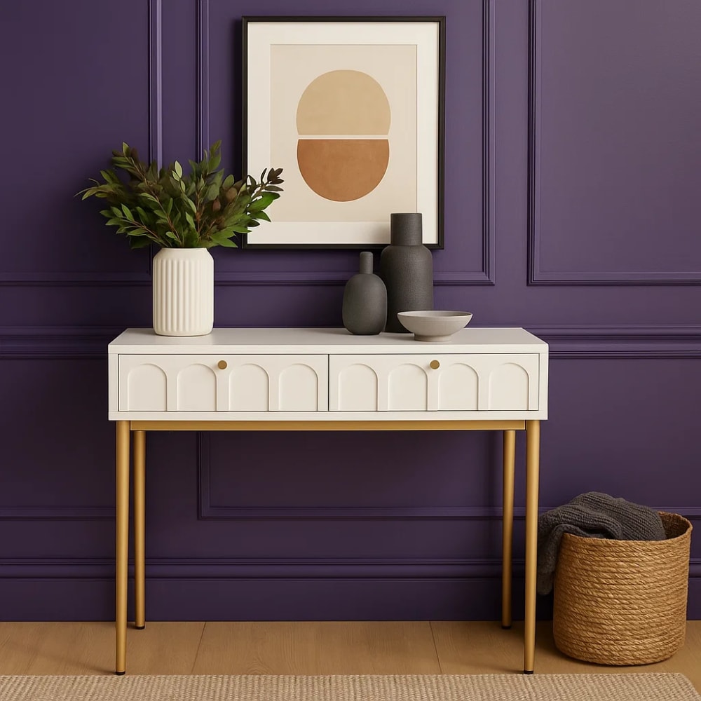 Weiß-goldener Konsolentisch mit eleganten Designer-Schubladen 100x45x77cm Spanplatte Weiß Urban Meuble Möbel Schlafzimmermöbel Schränke