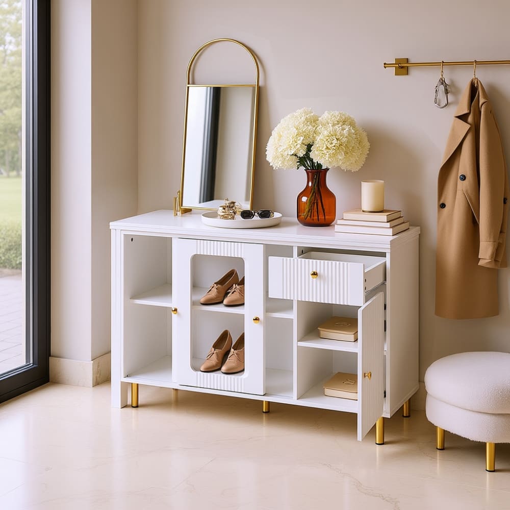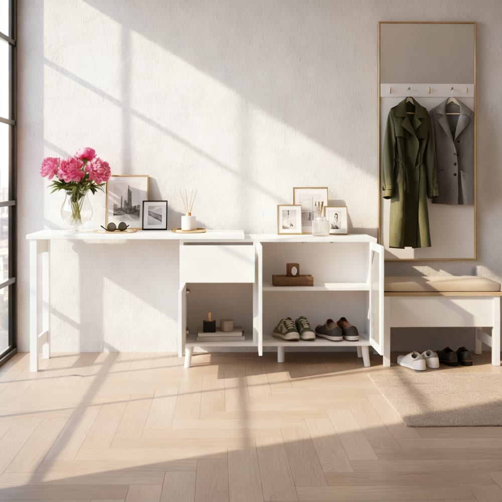 Weißer Schuhschrank mit integriertem Stauraum 120x70x40cm Spanplatte Weiß Urban Meuble Möbel Flurmöbel Schuhschränke