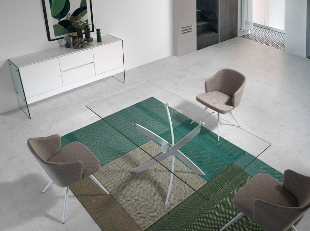 Weißes Sideboard mit Glasseiten 45x85x180cm Glas Weiß Angel Cerda Möbel Esszimmermöbel Sideboards, Highboards & niedrige Anrichten