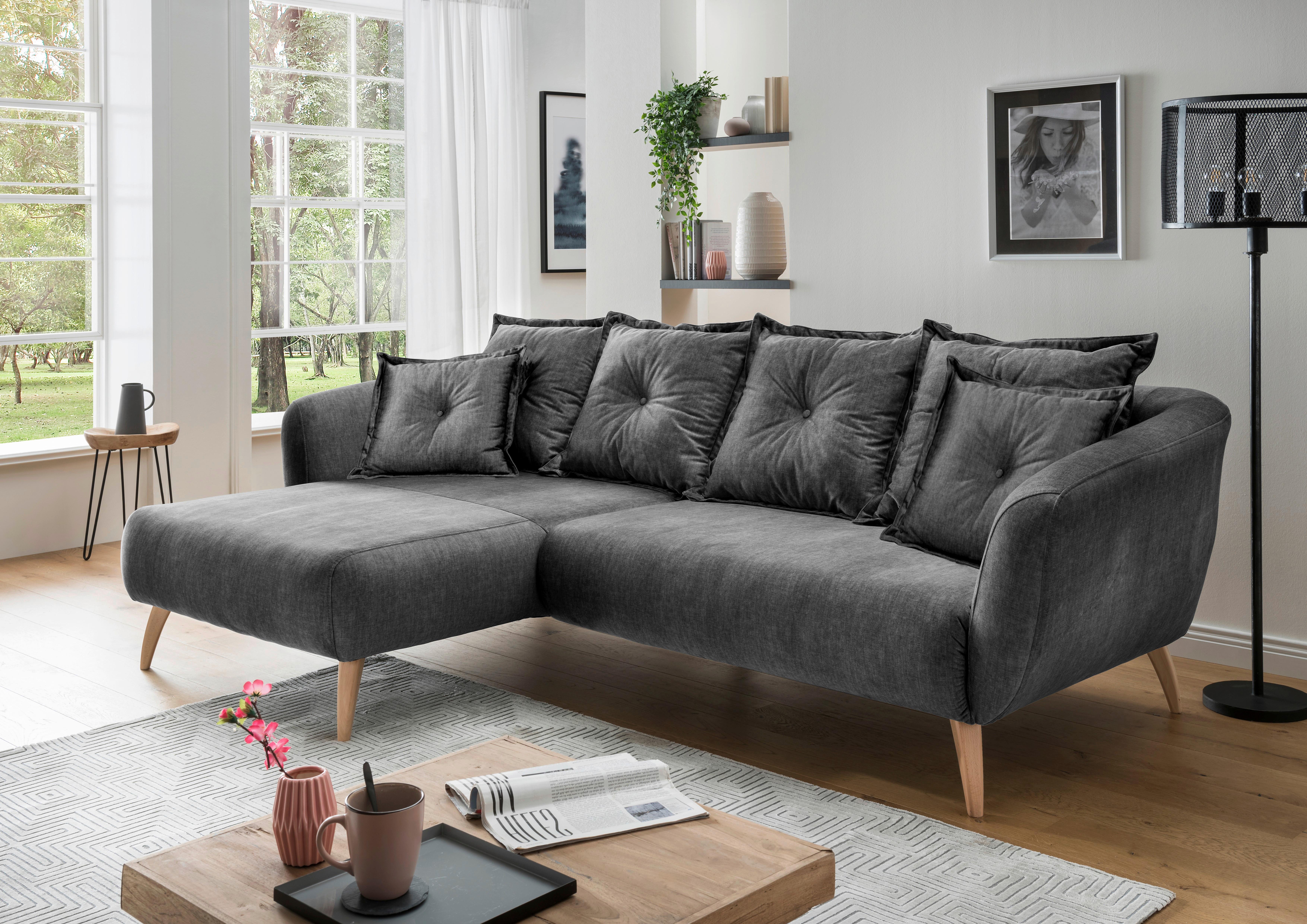 Wohnlandschaft Baggio Grau Velours Holz, Textil Livetastic Möbel > Sofas & Couches > Wohnlandschaften > Ecksofas > XXL Ecksofas Grau