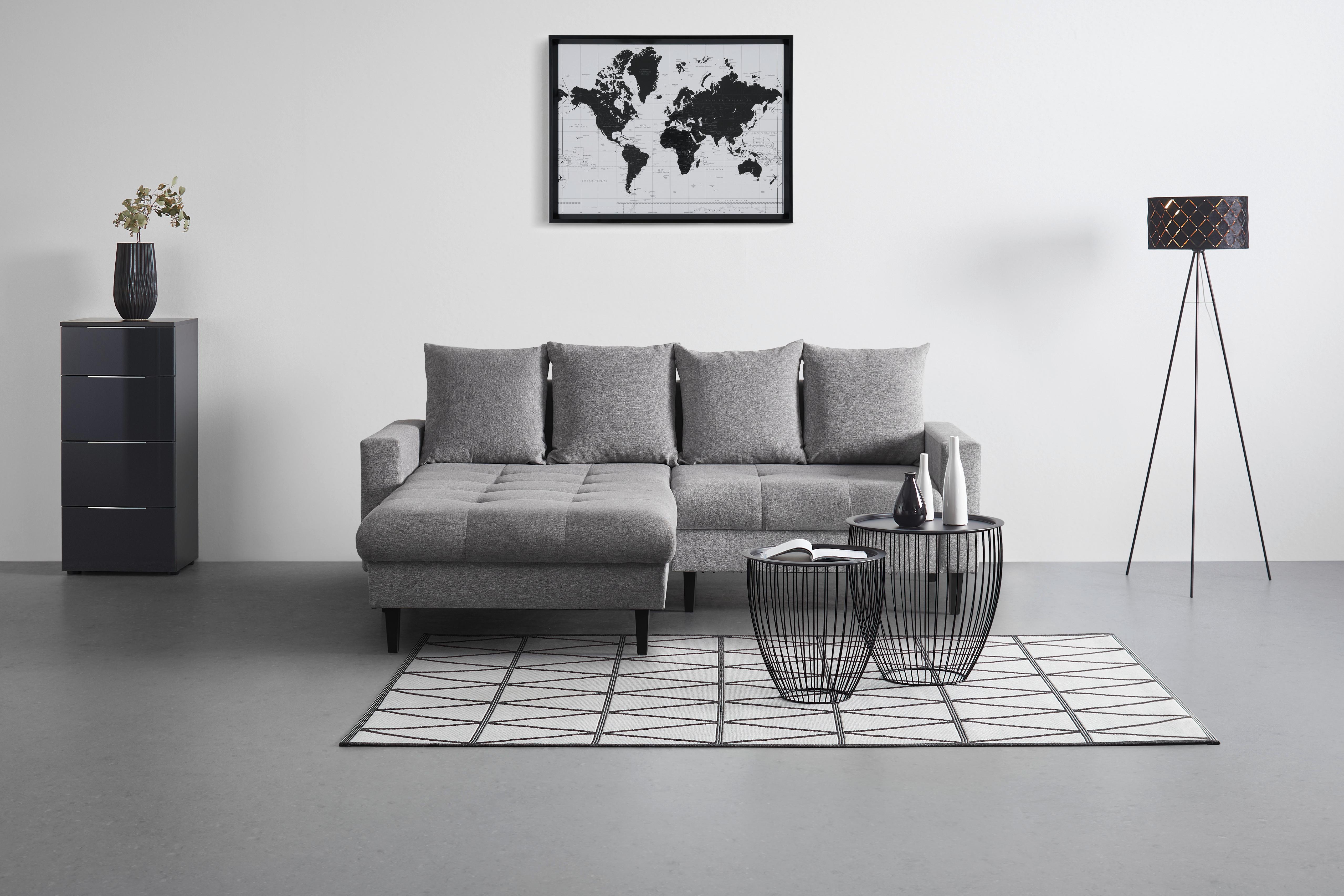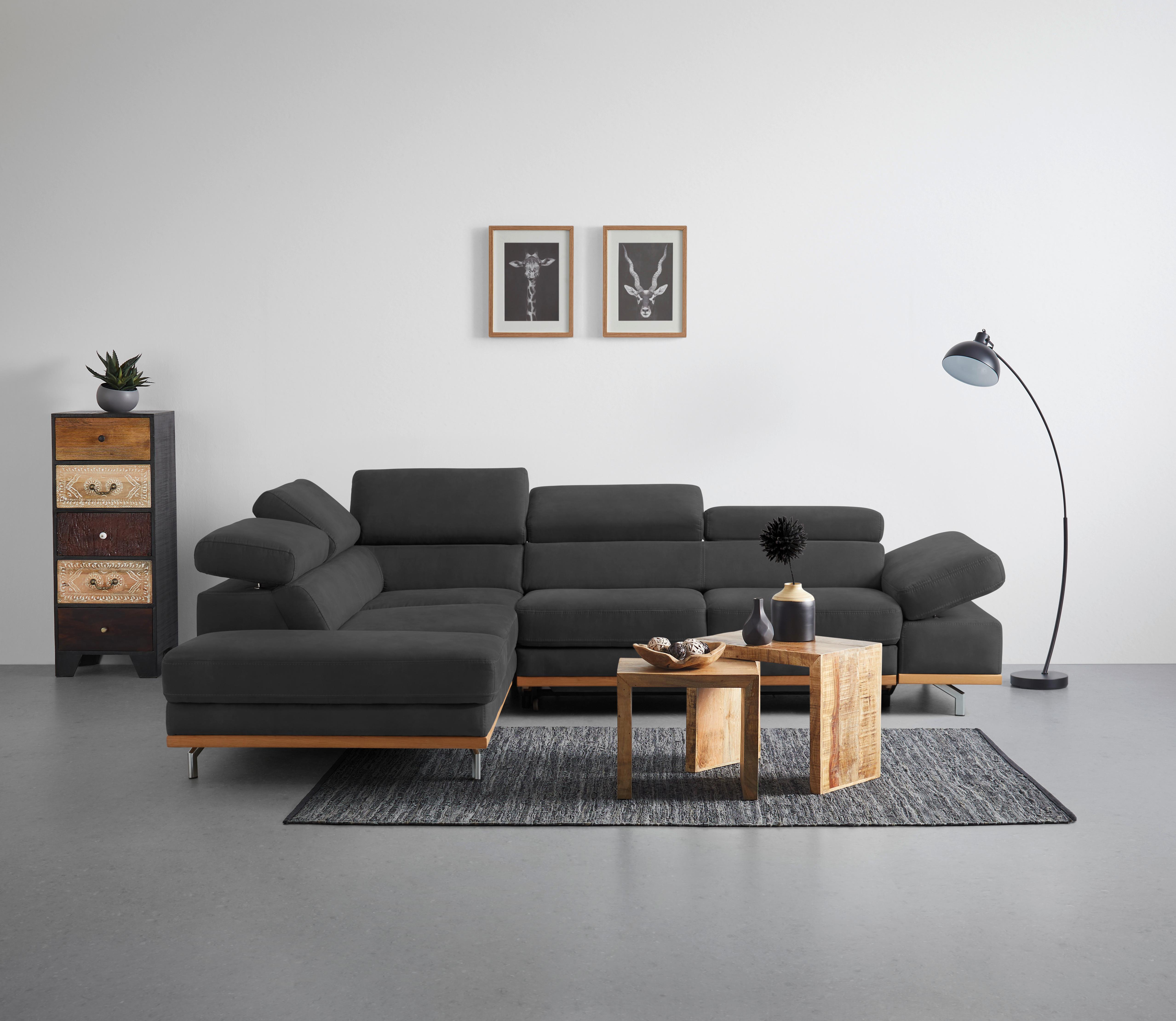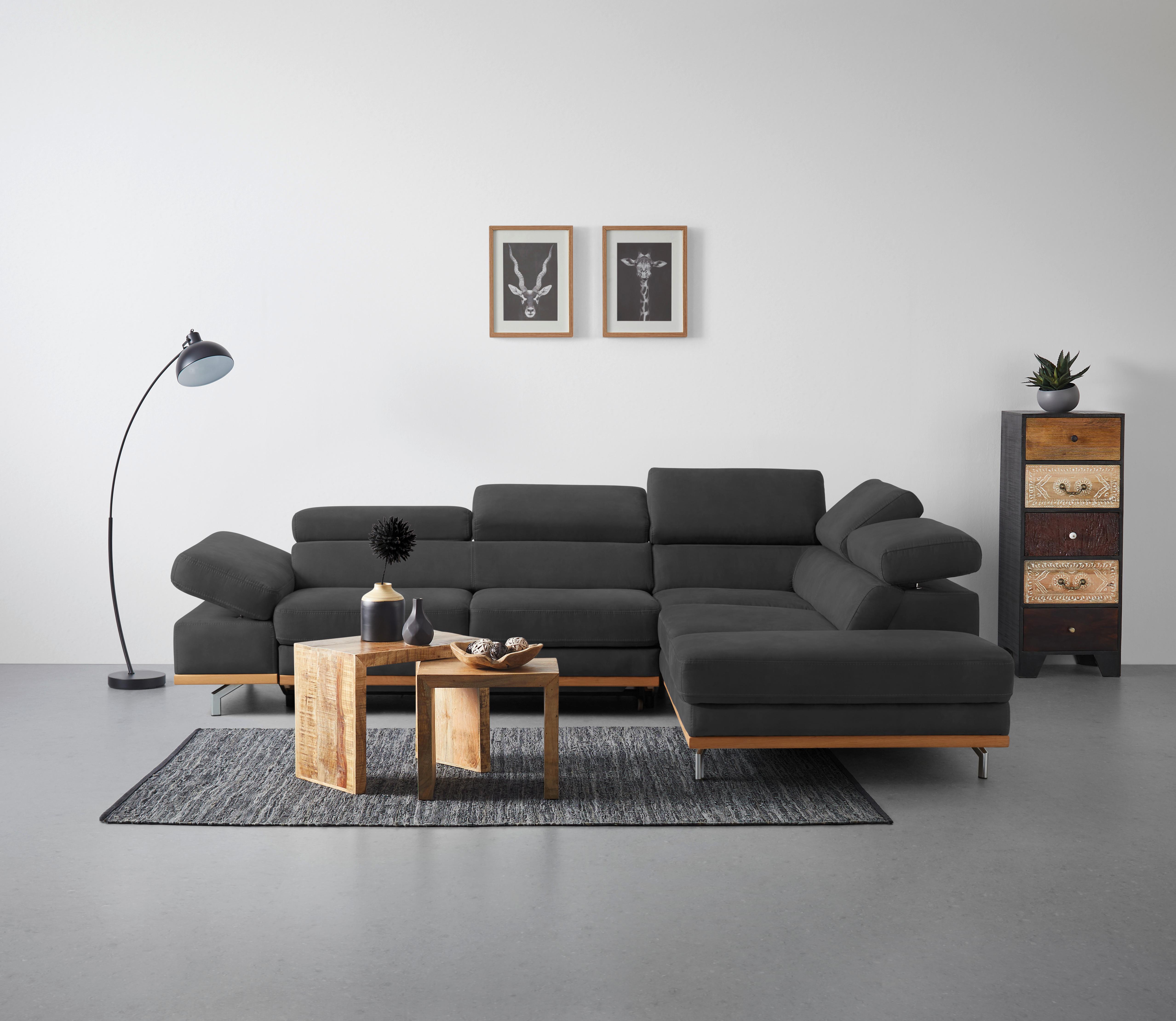 Wohnlandschaft Carmen in Schwarz mit Bettfunktion Holz, Textil Based Möbel > Sofas & Couches > Wohnlandschaften Schwarz