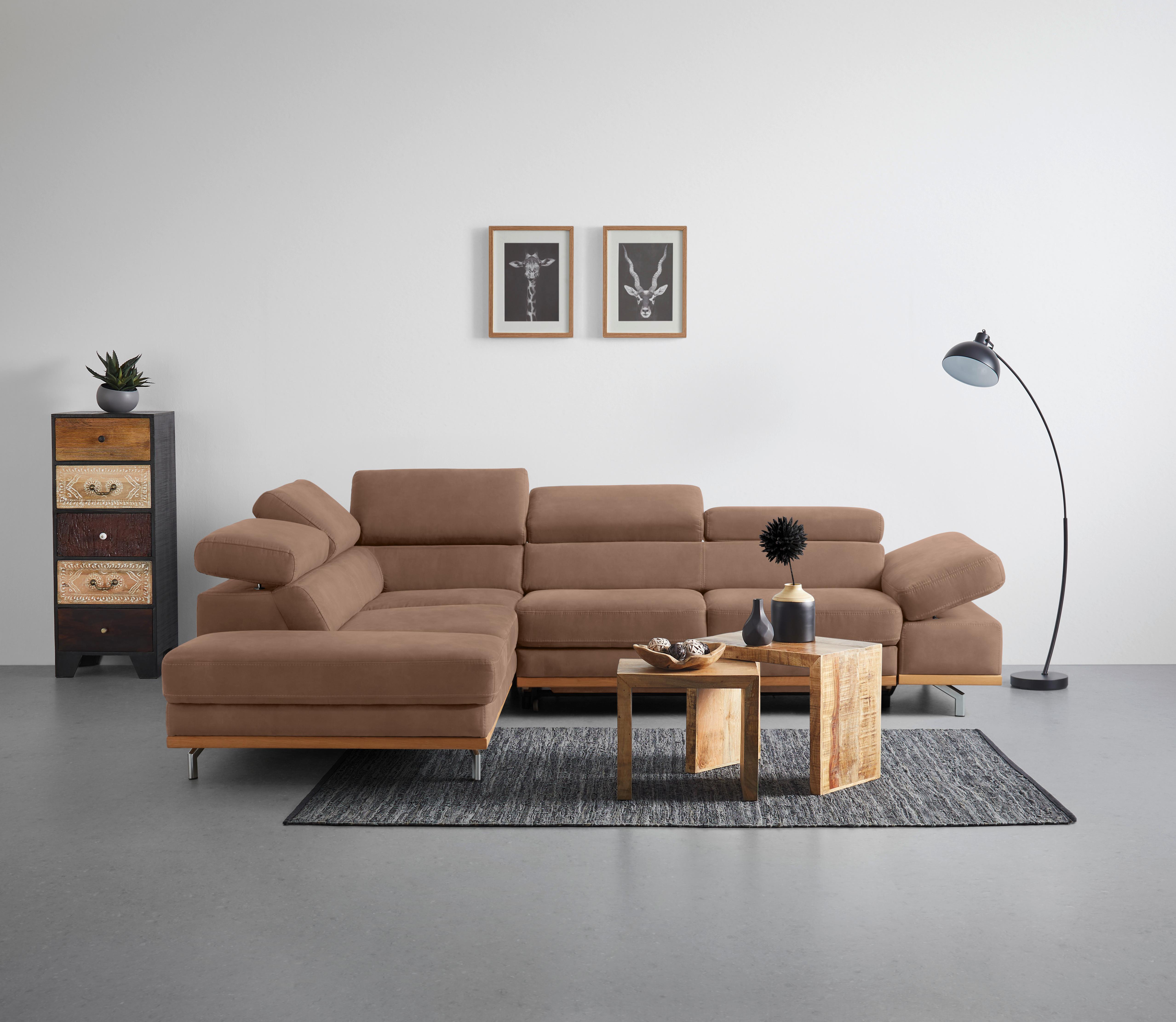 Wohnlandschaft Carmen in Braun mit Bettfunktion Holz, Textil Based Möbel > Sofas & Couches > Wohnlandschaften Braun