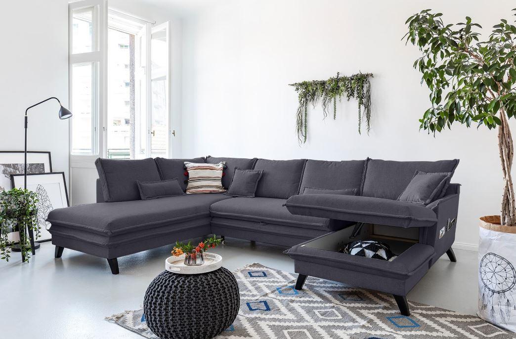 Wohnlandschaft in Anthrazit Textil Mömax Möbel > Sofas & Couches > Wohnlandschaften > Ecksofas > Eckschlafsofas Anthrazit