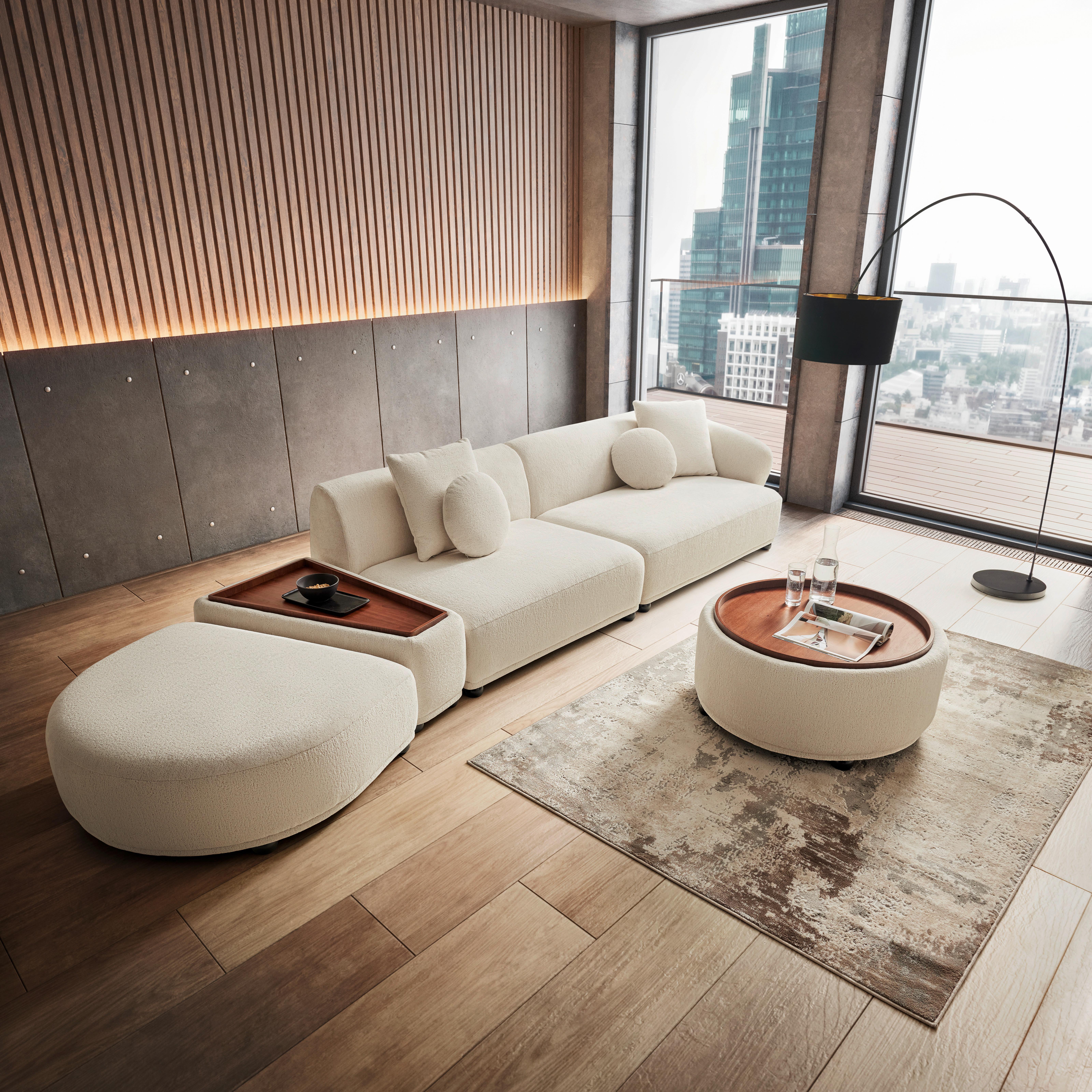 Wohnlandschaft Kira Weiß Webstoff Holz, Textil Bessagi Home Wohnzimmermöbel Weiß