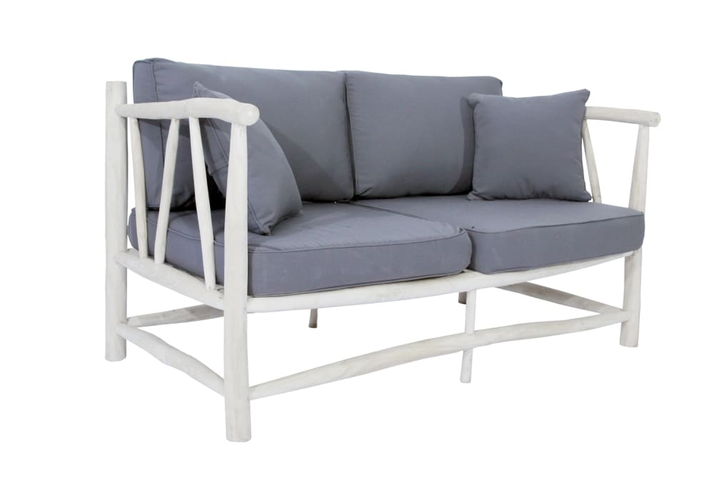 Zweiersofa aus Teakholz mit grauem Kissen 153x81x95cm Holz Braun Concept Usine Sofas und Sessel Sessel, Poufs und Fußbänke Sessel