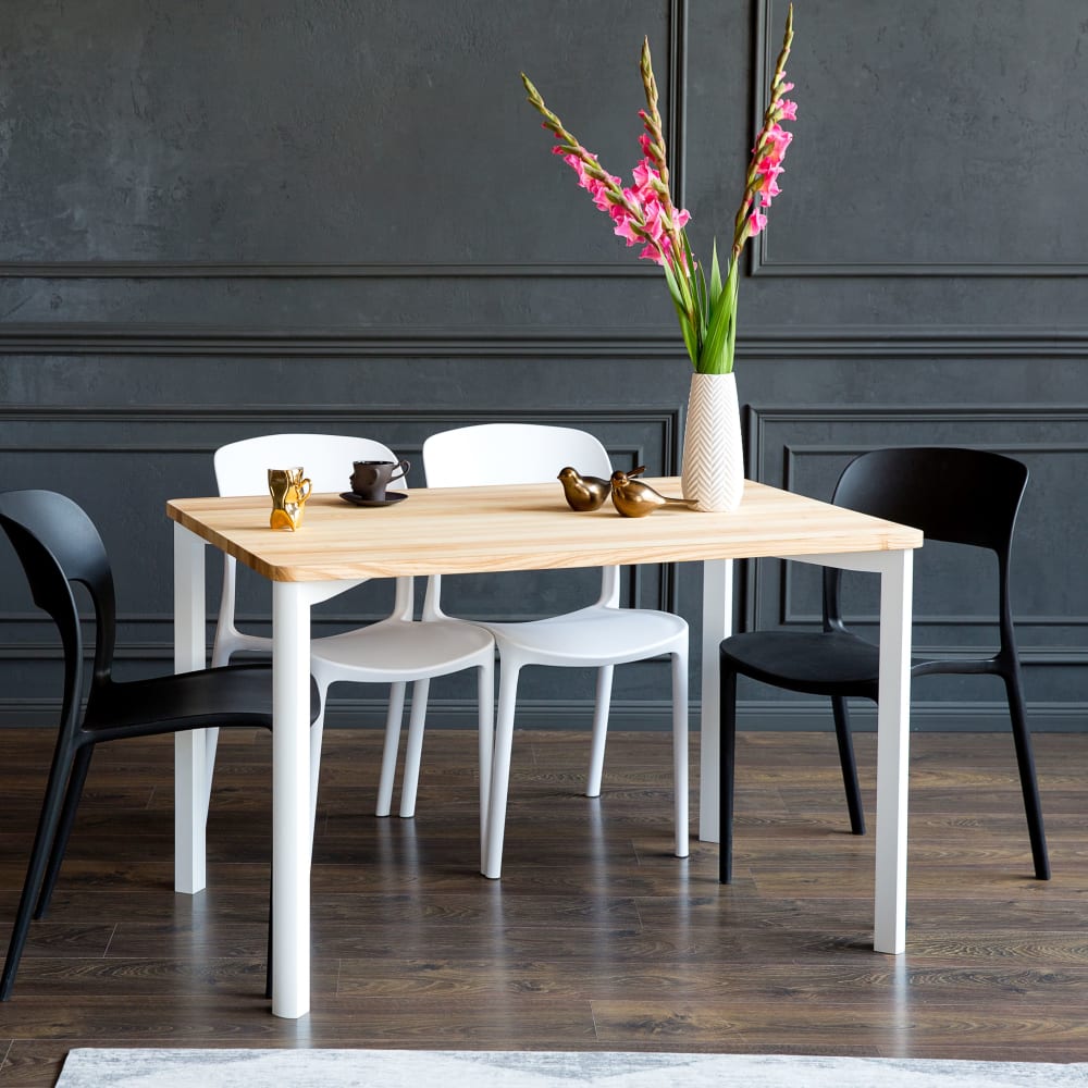 Der Massivholztisch garantiert Stabilität und Langlebigkeit. Dieser kleine rechteckige Tisch ist schlicht und fügt sich gut in verschiedene Innenräume ein. Die schöne Holzstruktur verleiht den Tischen eine einzigartige Note. Der quadratische Holztisch passt perfekt in kleine Innenräume und bringt Wärme in jeden Raum. Diese Tische zeichnen sich durch ihre hohe Widerstandsfähigkeit gegen Beschädigungen und Kratzer aus. Dank fehlender Schürze kann dieser Holztisch bequem von Rollstuhlfahrern genutzt werden. Auch Stühle mit Armlehnen passen problemlos unter die Tischplatte.