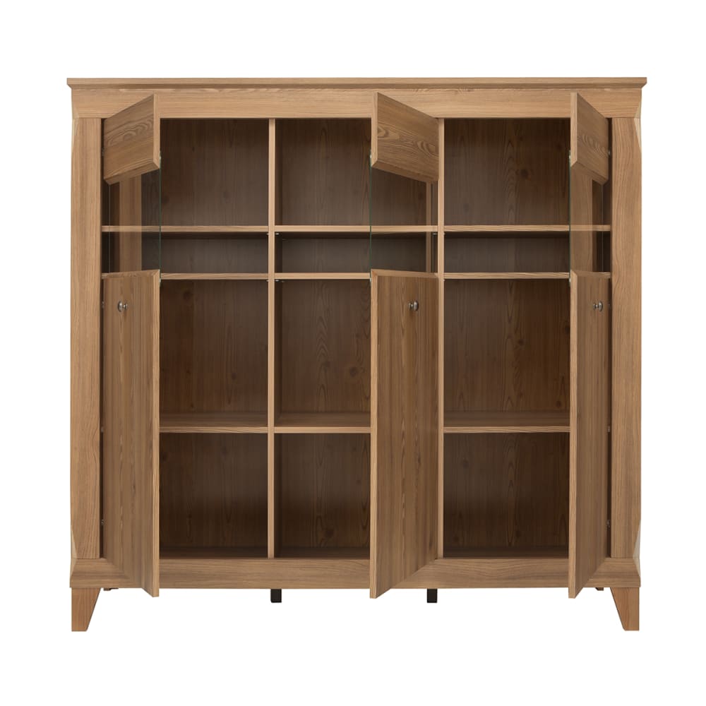 Niedriges 3-türiges Geschirrregal Raya HolzEuropäische Herstellung Kollektion :: Raya Materialien : SpanplattenFenster aus temperiertem Glas Farbe : Holz in Goldlärchenoptik Eigenschaften: 3 Glastüren9 abnehmbare RegaleLEDs nicht enthaltenGeräuschloses Schließsystem Gewicht und Abmessungen des Produkts: 97 kg156 x 47 x 150 cm Verpackung : Produkt wird zur Montage geliefert, inkl. Anleitung Garantie: 12 Monate Gesamtanzahl der Kartons : 6 Gesetzlicher Vertreter: NAPKINS, 30-34 avenue Henri Matisse, 06200 Nizza, FRANKREICH