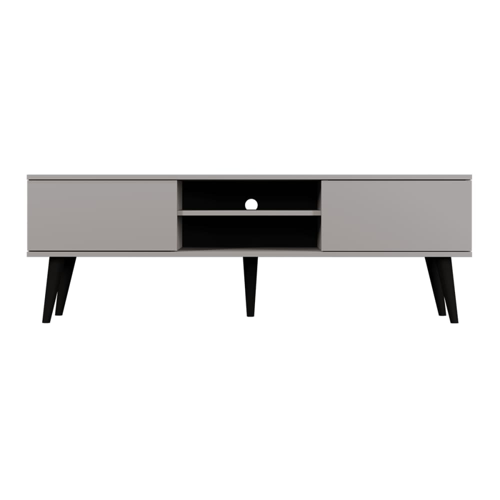 TV-Möbel 160 cm Toronto – GrauKollektion :: Toronto Materialien : 18 mm dicke laminierte SpanplattenLackierte HDF-PlattenLackierte Beine aus massivem Buchenholz Farbe : Grau TV-Möbel: 2 Türen mit einem Öffnungswinkel von 110°1 Nische mit 1 Regal, das in 5 Höhen verstellbar ist5 FüßeMaximale Größe des Fernsehers: 70 Zoll (178 cm)Belastbarkeit: 5 kg für die Regale und 30 kg für die Oberseite des MöbelsLeises SchließsystemKann nicht an der Wand befestigt werden. Gewicht und Maße: TV-Möbel: 28,5 kg160 x 55 x 35 cm Pflegetipp: Mit einem trockenen Tuch abstauben Verpackung : Produkt wird geliefert, zum Zusammenbauen, inkl. Anleitung Garantie: 12 Monate Gesamtanzahl der Kartons : 1