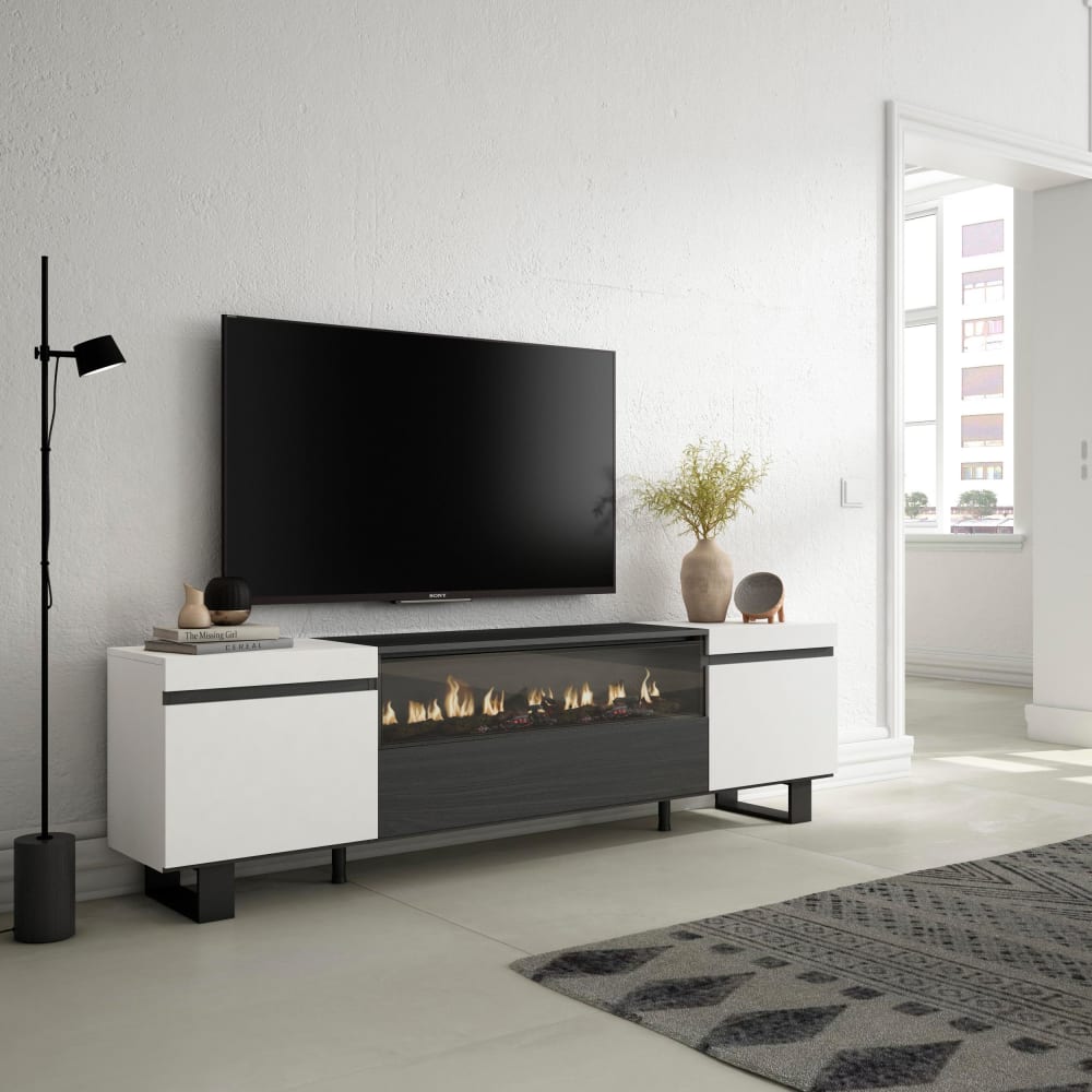 TV-Möbel Holzeffekt Kamin mit Feuereffekt 200x35x57cm Weiß und Schwarz von Skraut home