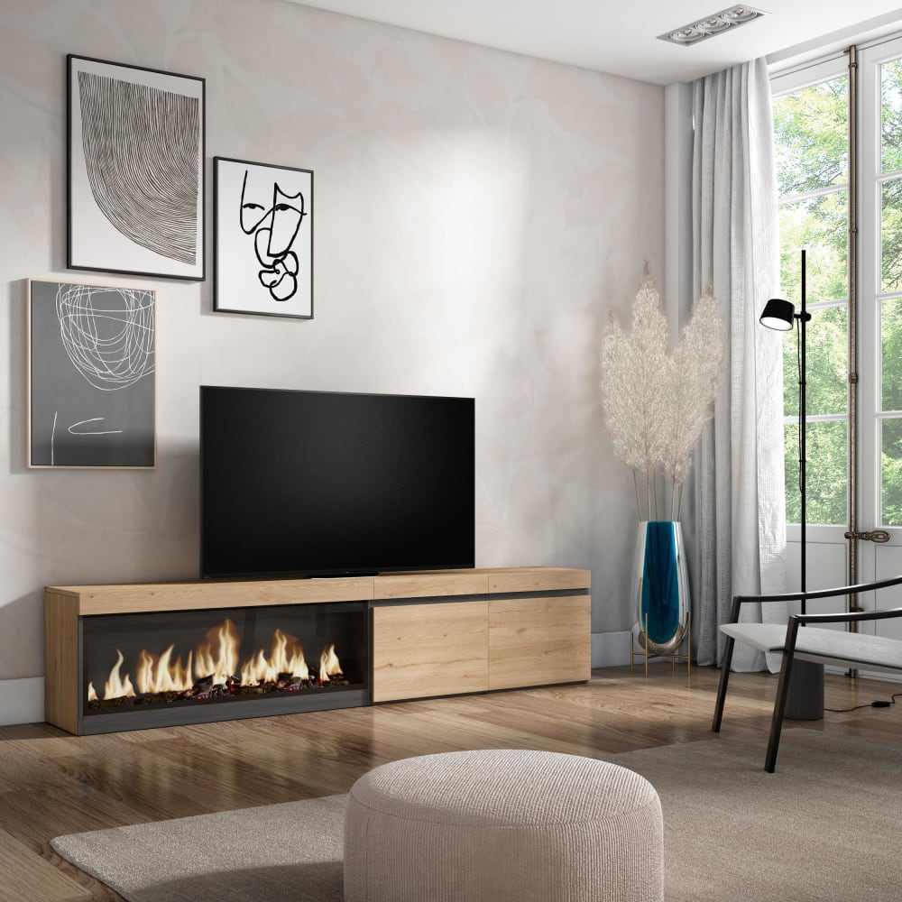 TV-Möbel Holzeffekt Kamin mit Feuereffekt XXL 208x35x45cm Eiche von Skraut home