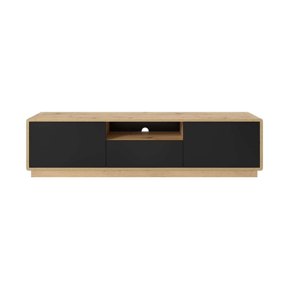 TV-Möbel mit 1 Schublade und 2 Türen, Mattschwarz und Holzoptik, 180cm von Petits meubles