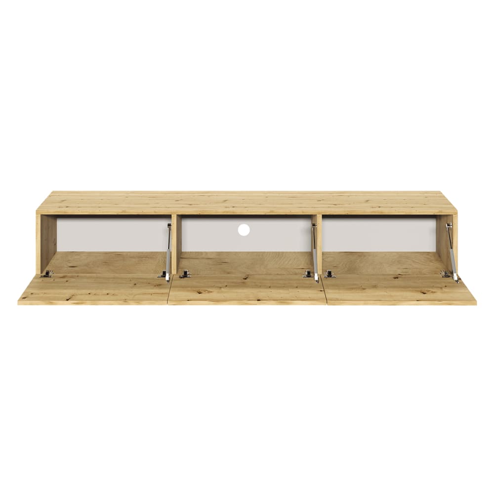 TV-Wandschrank mit 3 Türen 180 cm Idao Helles HolzKollektion :: Idao Materialien : Spanplatten Farbe : Holz in Eichenoptik Artisan Eigenschaften: 3 Türen mit Öffnung nach unten1 Loch für die KabelführungHöhere Türen zum leichteren ÖffnenSanftes Schließen mit GasdruckfedernWandbefestigungen: Schrauben und Dübel InklusiveEs wird empfohlen, die Befestigungen an den jeweiligen Untergrund anzupassen. Gewicht : 26 kg Maße: 180 x 35 x 29 cm Verpackung : Geliefert, zum Zusammenbauen, inkl. Anleitung Garantiert: 12 Monate Gesamtanzahl der Kartons : 1 Gewicht und Abmessungen der Kartons: 27 kg192 x 35 x 10 cm