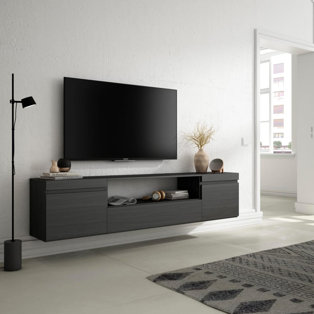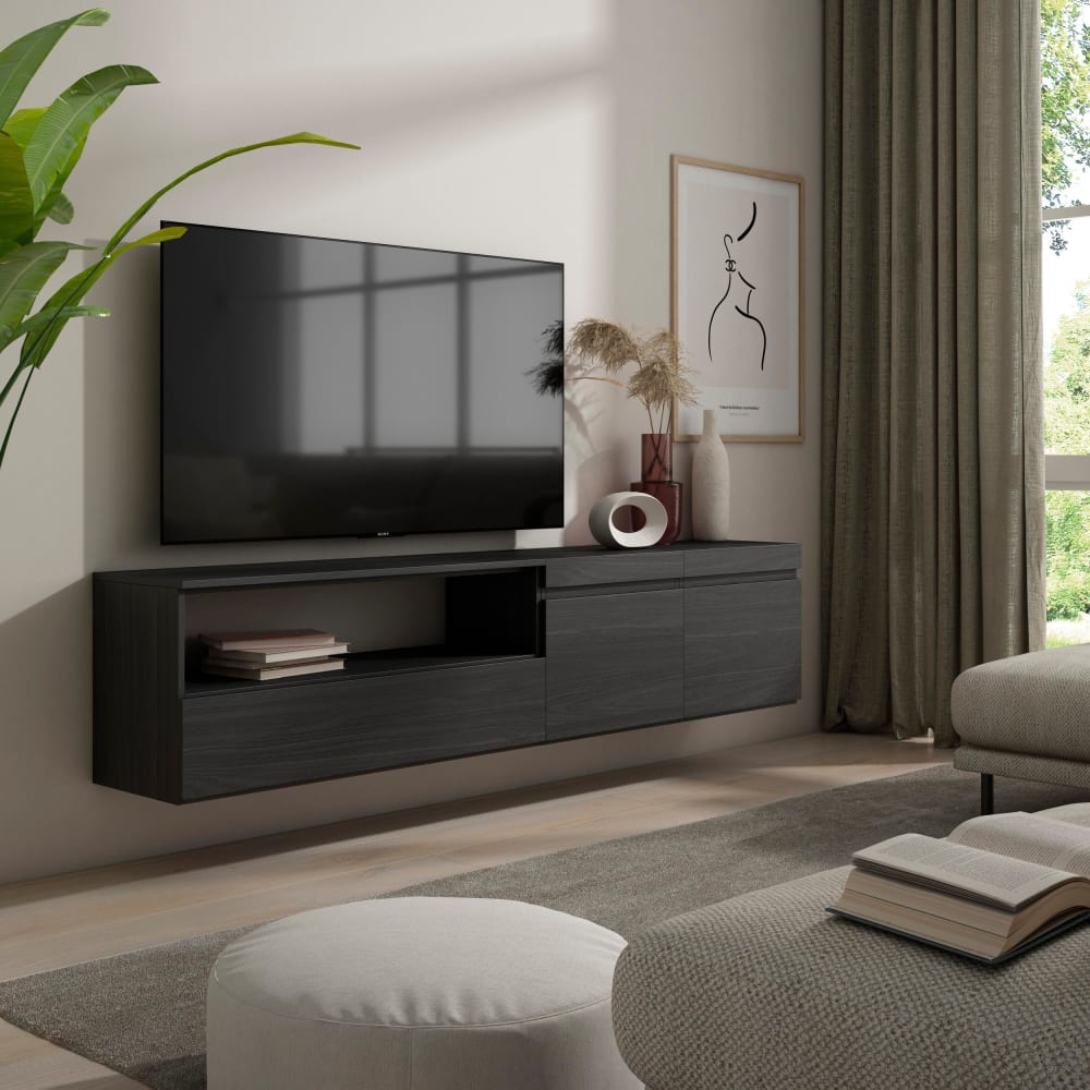TV-Möbel Holzeffekt Hängend 200x35x45cm Schwarz 200x45x35cm Spanplatte Schwarz Skraut home Möbel Wohnzimmermöbel TV-Möbel