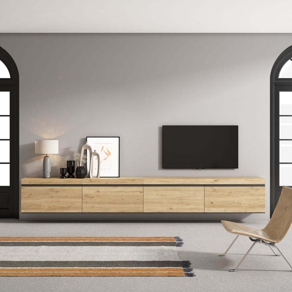 TV-Möbel Holzeffekt Hängend 320x35x45cm Eiche 320x45x35cm Spanplatte Beige Skraut home Möbel Wohnzimmermöbel TV-Möbel