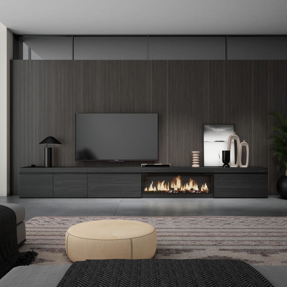 TV-Möbel Holzeffekt Kamin mit Feuereffekt XXL 317x35x45cm Schwarz 317x45x35cm Spanplatte Schwarz Skraut home Möbel Wohnzimmermöbel TV-Möbel
