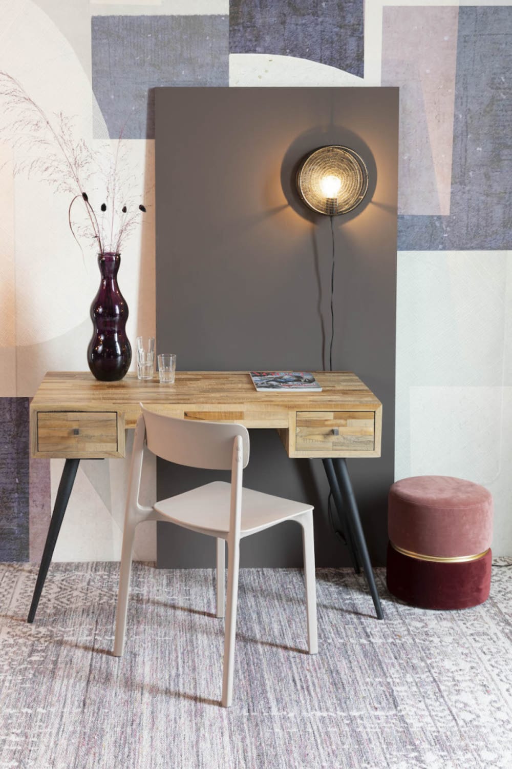 Entdecken Sie diesen einzigartigen kleinen Schreibtisch, der durch sein recyceltes Holz einen originellen industriellen Look erhält. Die Form der Beine spiegelt den skandinavischen Stil wider und verleiht dem Möbelstück eine elegante Note. Mit einer stabilen MDF-Platte und stilvollen Stahlbeinen ist dieser Schreibtisch nicht nur funktional, sondern auch ein echter Hingucker in jedem Arbeitsbereich. Die zwei praktischen Schubladen bieten ausreichend Stauraum für Ihre Büromaterialien und tragen zur Ordnung bei. Ideal für moderne Loft- oder skandinavische Einrichtungsstile. Eigenschaften :Struktur : StahlBreite : 113 cmAnzahl der Schubladen : 2Tiefe : 55 cmMaterialien : HolzHöhe : 76 cm