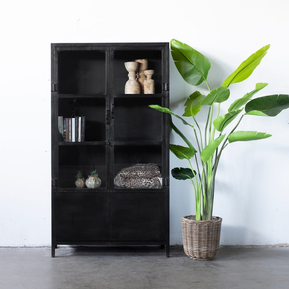 Der Vitrinenschrank Big in Schwarz ist ein Statement für Ihren Raum im industriellen Stil. Mit vier Regalen und vier Fächern bietet er ausreichend Platz für Ihre Sammlungen und Dekorationen.