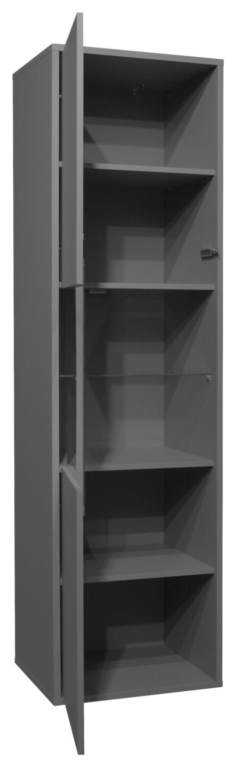 Die Vitrine Bounty bietet Ihnen eine stilvolle Möglichkeit, Ihre Sammlerstücke und wertvollen Gegenstände zur Schau zu stellen. Mit ihren Abmessungen von ca. 51 x 182 x 45 cm (BxHxT) bietet sie ausreichend Platz für Ihre Exponate. Das elegante anthrazitfarbene Design fügt sich nahtlos in jede Einrichtung ein und verleiht Ihrem Raum einen Hauch von Raffinesse. Ein besonderes Merkmal dieser Vitrine ist die Türdämpfung, die ein sanftes und geräuschloses Schließen ermöglicht. Dadurch werden Ihre wertvollen Gegenstände vor Erschütterungen geschützt. Jeder Boden der Vitrine ist mit einer maximalen Belastbarkeit von ca. 5 kg ausgestattet, sodass Sie Ihre Sammlerstücke sicher und stilvoll präsentieren können. Entdecken Sie die Vielseitigkeit und Eleganz der Vitrine Bounty, die nicht nur als Schaukasten dient, sondern auch als Blickfang in Ihrem Wohnzimmer, Schlafzimmer oder Büro. Bringen Sie Ihre wertvollen Gegenstände zum Strahlen und präsentieren Sie sie in dieser hochwertigen Vitrine, die Funktionalität und Ästhetik auf harmonische Weise vereint.
