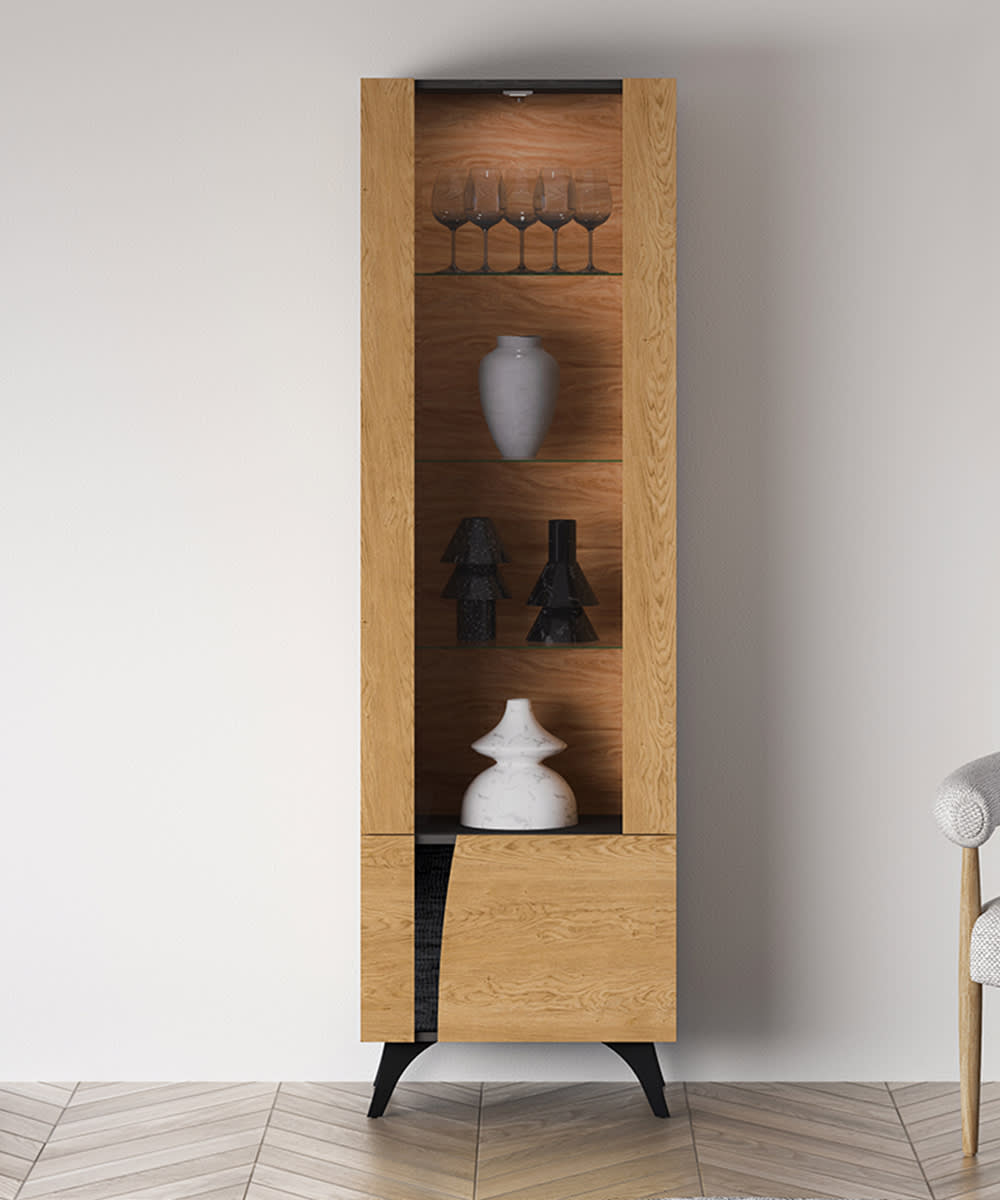 Vitrine mit Tür aus MDF, Türanschlag rechts, Eiche/Schwarz,58x40x190cm von Feldmann-Wohnen