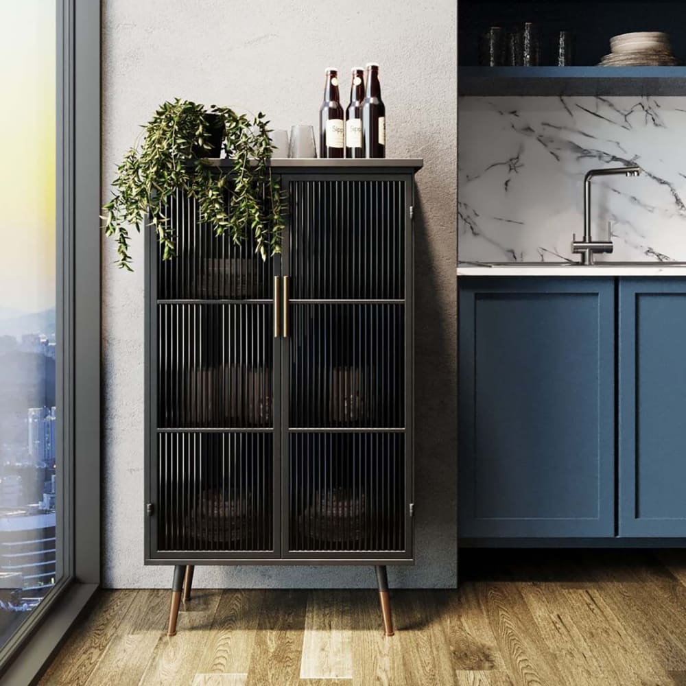 Vitrine mit 2 Türen aus Stahl und Glas, schwarz von Kare Design