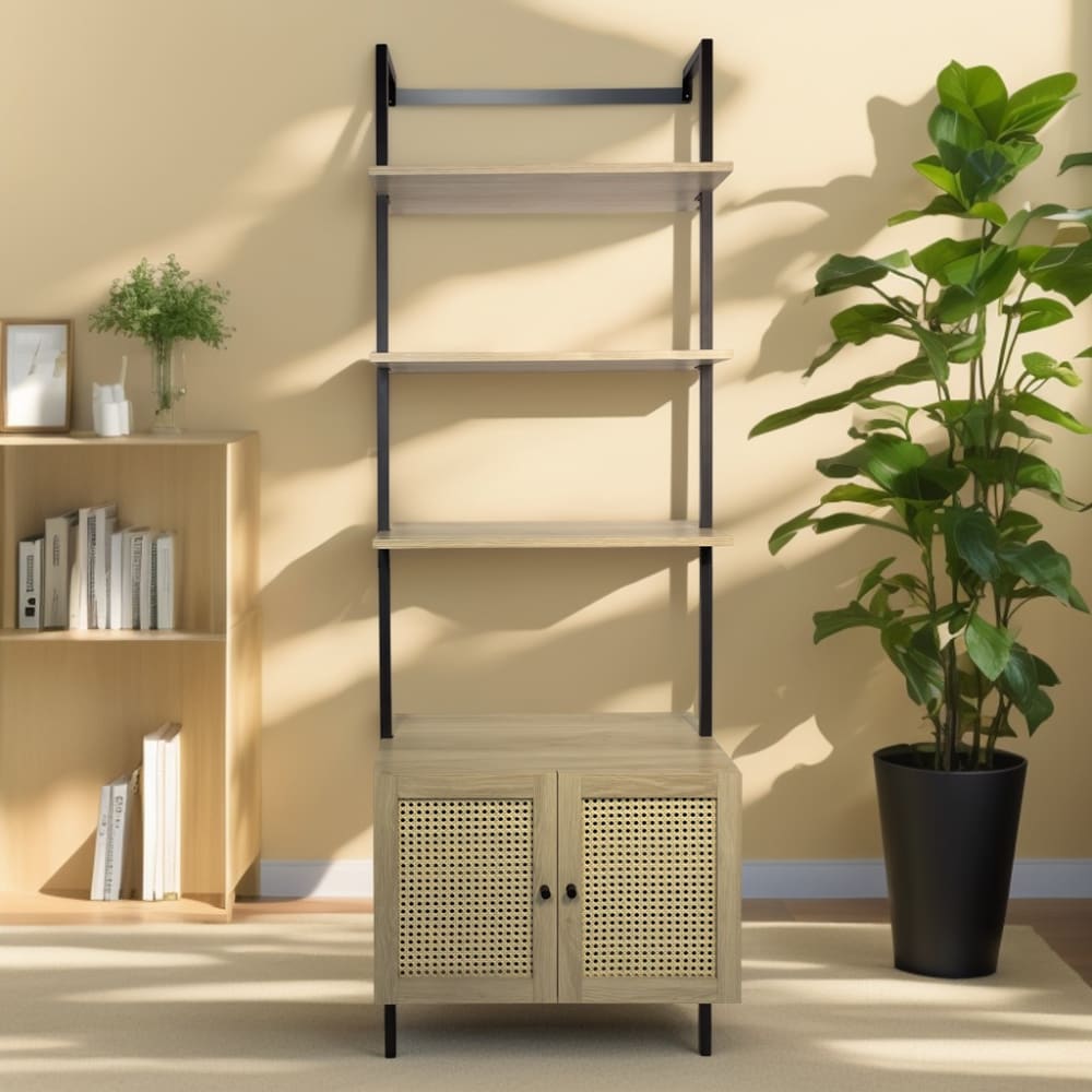 Wandregal aus Holz und Metall, 2 Türen mit Rohrgeflecht, 60x35x184 cm von Box & beyond