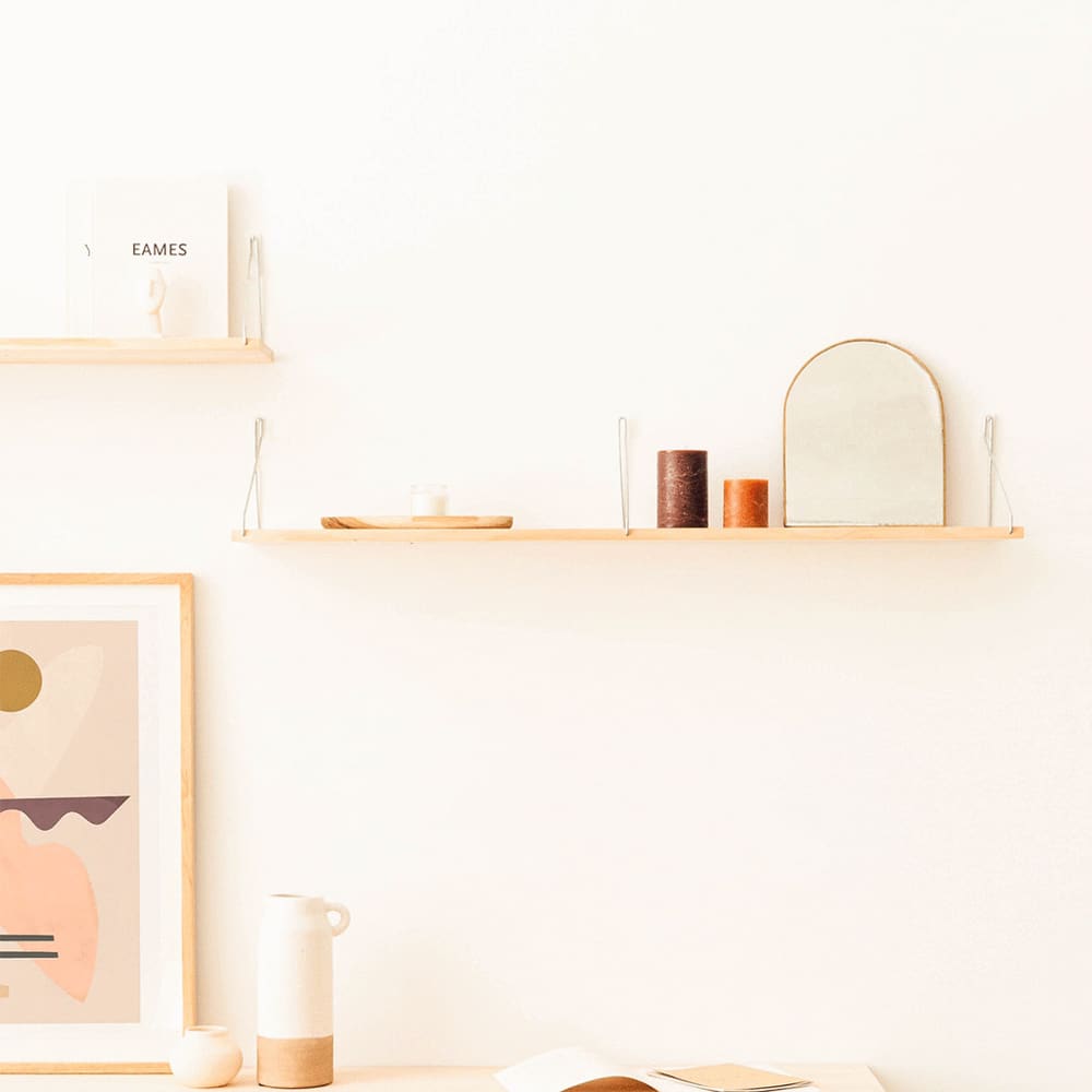 Wandregal aus massivem, natürlichem Kiefernholz (PEFC-zertifiziert), einem sehr langlebigen und widerstandsfähigen Naturmaterial. Verzinkte Eisenträger, einfach an der Wand zu befestigen und extrem widerstandsfähig.