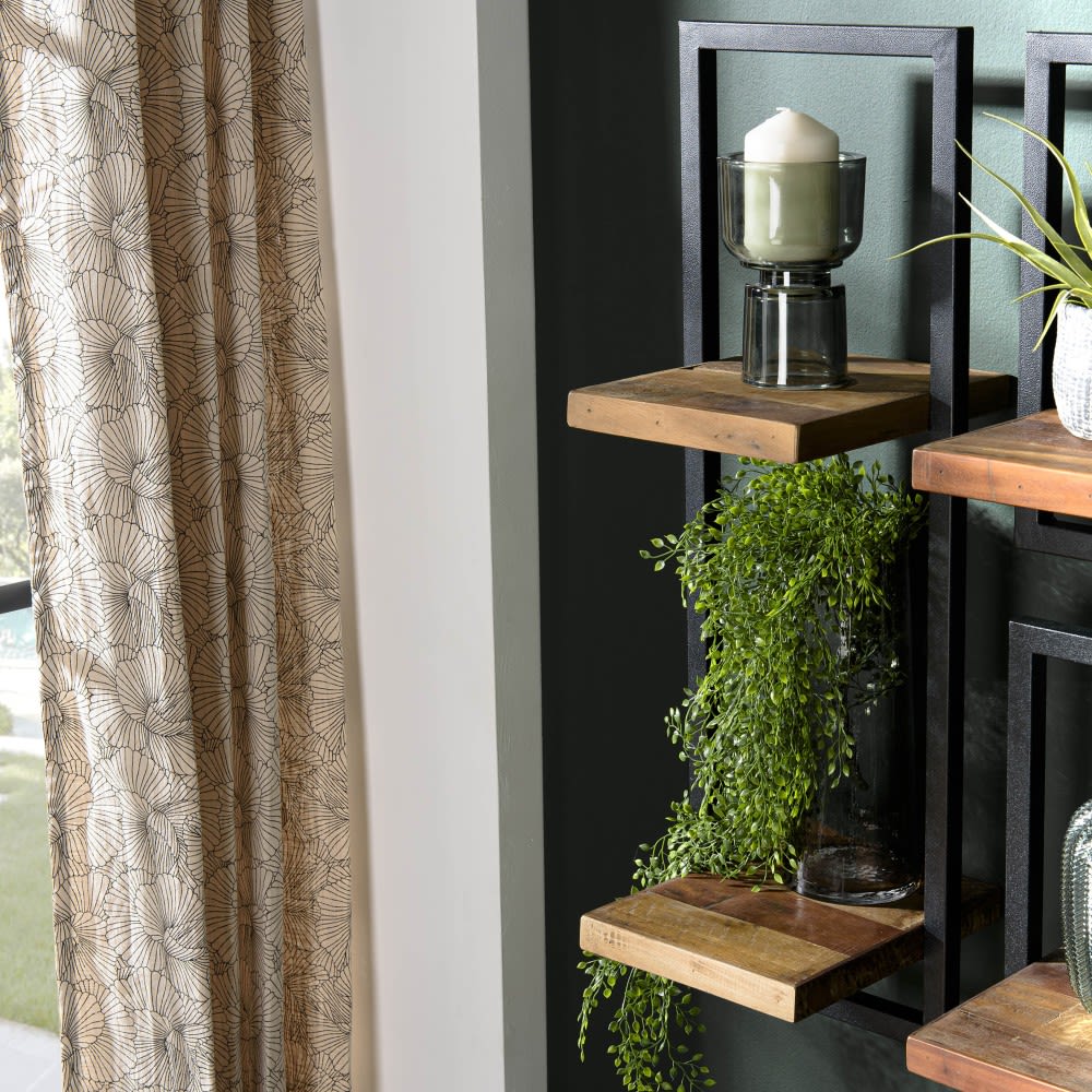 Wandregal mit 2 Etagen aus recyceltem Teakholz in braun mit schwarzer Metallstruktur. Maße: 25 x 25,3 x 75 cm. Artikel aus recyceltem Teakholz/Stahl. Dieser Artikel besteht aus recyceltem Holz! Recyceltes Holz ist wiedergewonnenes Holz aus alten Dachstühlen, Bootsrümpfen oder jeglichem Altholz, das bereits ein langes Leben hinter sich hat. Das verleiht ihm diesen altertümlichen und authentischen Look mit seinen Unvollkommenheiten, die seinen ganzen Charme ausmachen. Die Beschaffung von recyceltem Holz ist eine umweltbewusste Initiative, die zur Bekämpfung der Entwaldung beiträgt. Lassen Sie sich von diesem authentischen Wandregal aus Holz verführen. Dieser Artikel aus recyceltem Teakholz und Stahl ist sehr elegant und voller Charakter. Das schlanke Design bietet zwei Ablagefächer für Pflanzen, Kerzen oder andere dekorative Gegenstände.
