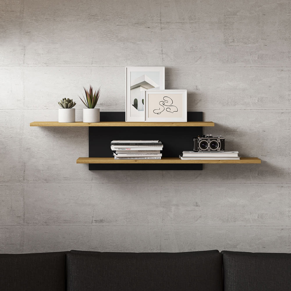 Wandregal mit Ablageböden aus Spanplatte, 115x22x30cm, Eiche / Schwarz von Feldmann-Wohnen