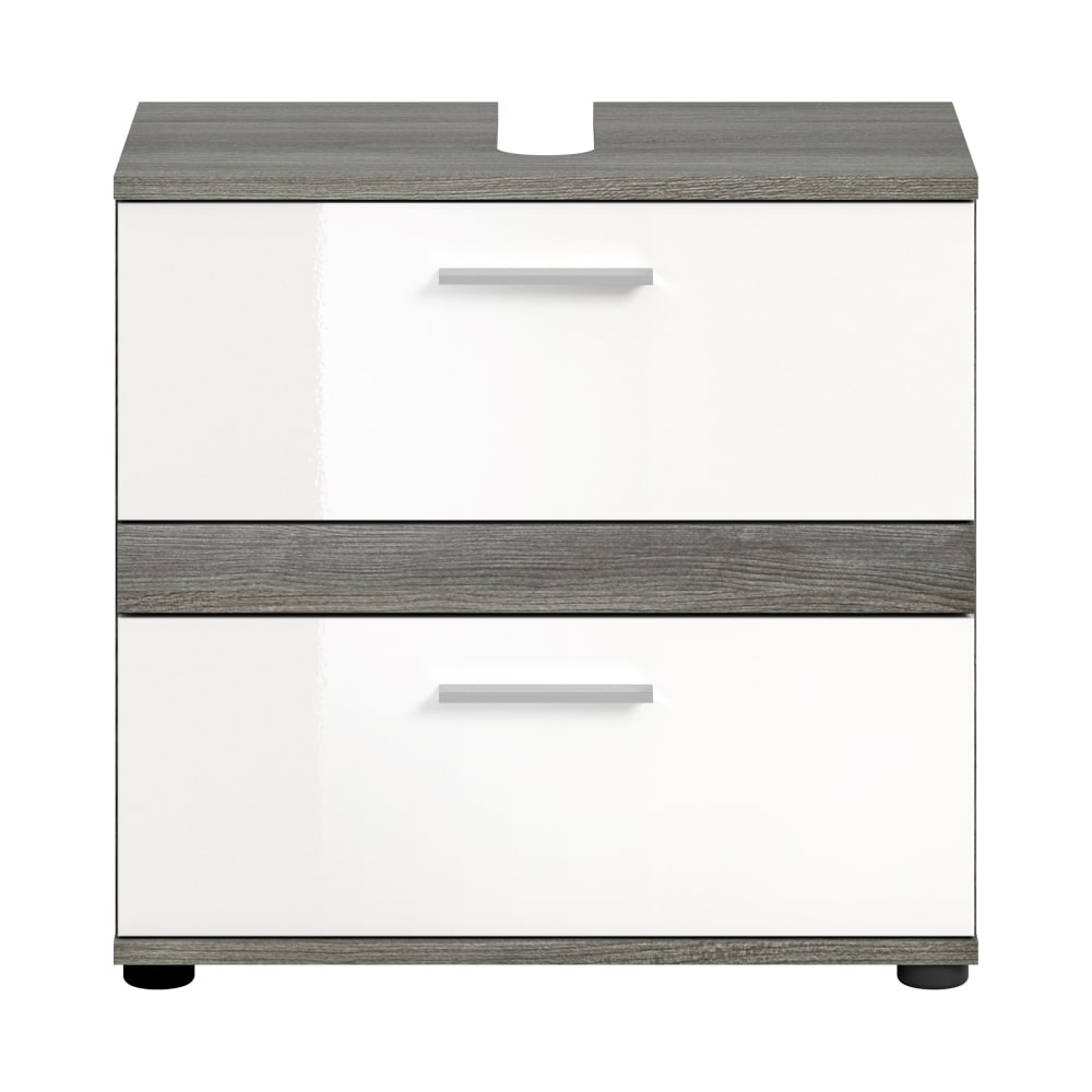 Entdecken Sie unseren Waschbeckenunterschrank mit den Maßen 60x57x34 cm in eleganter Rauchsilber-Nachbildung und strahlendem Weiß-Hochglanz-Finish. Mit seinem stilvollen Design und großzügigem Stauraum ist dieser Schrank die ideale Ergänzung für Ihr Badezimmer. Eine perfekte Kombination aus Ästhetik und Funktionalität.