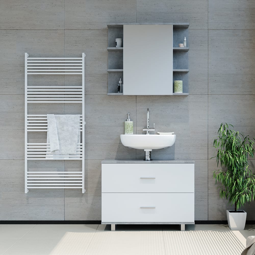 Waschbeckenunterschrank, Beton/Weiß 80 x 60.8cm von Vicco