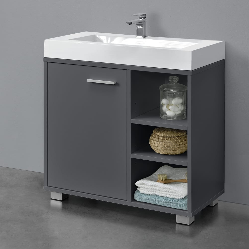 Waschbeckenunterschrank in Holzoptik 55.6 x 60 x 31 cm, in Dunkelgrau von en casa