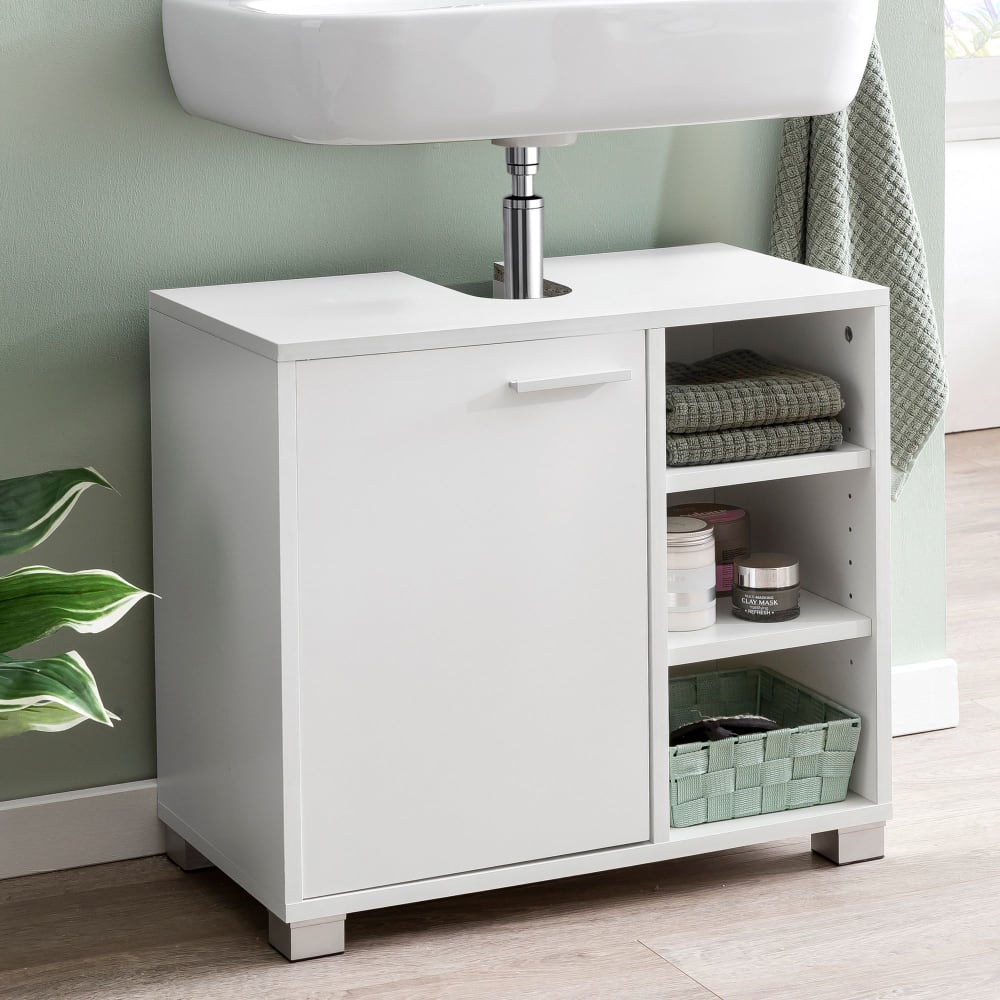 Waschbeckenunterschrank mit Tür und 3 Fächer aus MDF, Weiß von FineBuy
