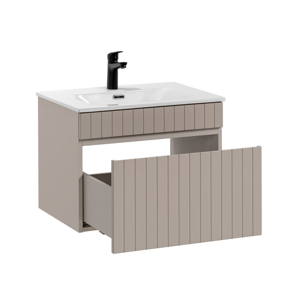 Einzelner Unterbauwaschtisch 60cm Zelie KaschmirKollektion :: Zelie Europäische Herstellung Materialien : 16 mm MDF-PlattenLaminierte Platten70% FSC-zertifiziertes Holz aus nachhaltiger ForstwirtschaftKeramikwaschbecken Farbe : Kaschmirfarbenes MöbelWeißes Waschbecken Eigenschaften: Hängeschrank1 SchubladeGeräuscharmes SchließsystemInklusive 1 EinbauwaschbeckenWandbefestigungen: Schrauben und Dübel nicht inklusiveWir empfehlen, die Befestigungen an den Untergrund anzupassenDieses Möbelstück ist in 5 Größen erhältlich: 60 cm, 80 cm, 100 cm, 140 cm und 180 cmDieses Möbelstück ist in 3 Farben erhältlich: Weiß, Rosa und Kaschmir. Weitere Informationen : Spiegel Nicht im Lieferumfang enthaltenArmaturen Nicht im Lieferumfang enthaltenFreier Auslauf Nicht im Lieferumfang enthaltenPlatzsparender Siphon Nicht im Lieferumfang enthalten Gewicht : Waschtischunterschrank: 14 kgWaschbecken: 11 kg Abmessungen : Möbel: 60,4 x 45 x 46 cmWaschbecken: 61 x 46 x 17 cm Die angegebenen Maße können um einige Millimeter abweichen. Montagehinweise : Dieses Möbelstück ist für eine Wasserzufuhr aus der Wand konzipiert. Für eine optimale Montage wird die Verwendung eines Platzspar-Siphons dringend empfohlen, je nach Modell ist dieser sogar obligatorisch, um das ordnungsgemäße Schließen der Schubladen zu gewährleisten und Kollisionen mit der Rohrleitung zu vermeiden. Verpackung : Produkt wird zur Montage geliefert, inklusive Anleitung. Produkt mit 24-monatiger Garantie. Gesamtanzahl der Kartons : 2 Gewicht und Abmessungen der Kartons: 16 kg83 x 48 x 11 cm / 12 kg64 x 48 x 18 cm