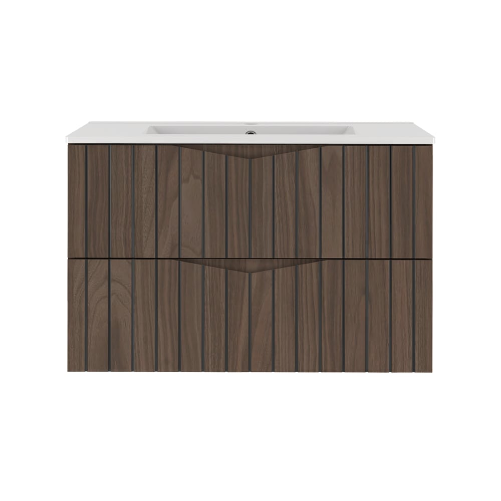 Einzelwaschtisch 80cm Siena Holz und SchwarzKollektion :: Siena Europäische Herstellung Materialien : Front aus 18 mm MDF-PlattenKorpus aus 16 mm LaminatplattenFSC-zertifiziertes Holz aus nachhaltiger ForstwirtschaftKeramikwaschbecken Farbe : Holz in Walnussoptik und schwarzer Waschtisch Die Farbe auf dem Foto kann je nach den Einstellungen Ihres Bildschirms (Kontrast, Helligkeit) variieren. Eigenschaften: Hängeschrank2 SchubladenGeräuscharmes SchließsystemInklusive WaschbeckenAbflussdurchmesser: 45 mmWandbefestigung: inkl. Schrauben und DübelEs wird jedoch empfohlen, Ihre Befestigungen an Ihren Untergrund anzupassen. Weitere Informationen : Spiegel nicht inbegriffenArmaturen nicht inbegriffenFreier Abfluss nicht inbegriffenSiphon nicht inbegriffen Gewicht : Waschtischunterschrank: 19 kgWaschbecken: 18,5 kg Abmessungen : Waschtischunterschrank: 80 x 45,8 x 50 cmWaschbecken: 81 x 46,5 x 17,5 cm Die angegebenen Maße können um einige Millimeter abweichen Installationshinweise: Dieses Möbelstück ist für die Installation mit Wasserzuführungen von der Wand aus gedacht. Pflegetipps: Für ausreichende Belüftung und eine funktionierende Lüftungsanlage sorgenKanten, die Wasser ausgesetzt sind, mit Silikon versiegelnDas Innere von Möbeln nicht der Feuchtigkeit (Wasser, Wasserdampf) aussetzen Sicherheitshinweise: Für gute Belüftung im Badezimmer sorgenDas Möbelstück sicher an der Wand befestigenDie in den Anleitungen angegebenen empfohlenen Höchstlasten beachten Verpackung : Produkt wird zur Montage geliefert, inkl. Anleitung Produktgarantie: 24 Monate Gesamtanzahl der Kartons : 2 Gewicht und Abmessungen der Kartons: 19 kg / 86 x 48 x 12 cm18, 5 kg / 96 x 57 x 25 cm Gesetzlicher Vertreter: NAPKINS, 30/34 avenue Henri Matisse, 06200 Nizza, Frankreich