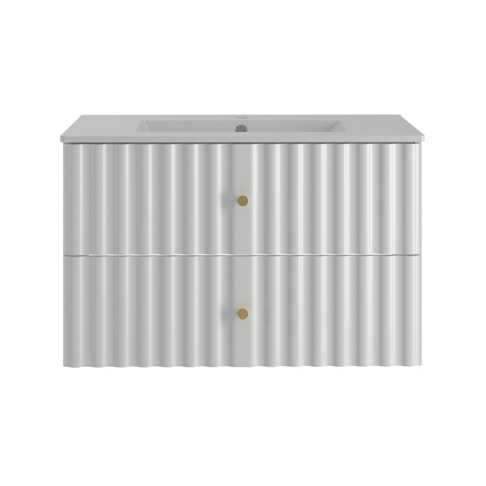Einzelner Unterschrank mit Einbauwaschbecken 80cm Izae WeißKollektion :: Izae Europäische Herstellung Materialien : Front aus 18 mm MDF-PlattenKorpus aus 16 mm LaminatplattenFSC-zertifiziertes Holz aus nachhaltiger ForstwirtschaftKeramikwaschbeckenMetallgriff Farbe : Weiß und goldene Griffe Die Farbe auf dem Foto kann je nach den Einstellungen Ihres Bildschirms (Kontrast, Helligkeit) variieren. Eigenschaften: Hängeschrank2 SchubladenGeräuscharmes SchließsystemInklusive WaschbeckenAbflussdurchmesser: 45 mmWandbefestigung: inkl. Schrauben und DübelEs wird jedoch empfohlen, Ihre Befestigungen an Ihren Untergrund anzupassen. Weitere Informationen : Spiegel nicht inbegriffenArmaturen nicht inbegriffenFreier Abfluss nicht inbegriffenSiphon nicht inbegriffen Gewicht : Waschtischunterschrank: 19 kgWaschbecken: 18,5 kg Abmessungen : Waschtischunterschrank: 80 x 45,8 x 50 cmWaschbecken: 81 x 46,5 x 17,5 cm Die angegebenen Maße können um einige Millimeter abweichen Installationshinweise: Dieses Möbelstück ist für die Installation mit Wasserzuführungen von der Wand aus gedacht. Pflegetipps: Für ausreichende Belüftung und eine funktionierende Lüftungsanlage sorgenKanten, die Wasser ausgesetzt sind, mit Silikon versiegelnDas Innere von Möbeln nicht der Feuchtigkeit (Wasser, Wasserdampf) aussetzen Sicherheitshinweise: Für gute Belüftung im Badezimmer sorgenDas Möbelstück sicher an der Wand befestigenDie in den Anleitungen angegebenen empfohlenen Höchstlasten beachten Verpackung : Produkt wird zur Montage geliefert, inkl. Anleitung Produktgarantie: 24 Monate Gesamtanzahl der Kartons : 2 Gewicht und Abmessungen der Kartons: 19 kg / 86 x 48 x 12 cm18, 5 kg / 96 x 57 x 25 cm Gesetzlicher Vertreter: NAPKINS, 30/34 avenue Henri Matisse, 06200 Nizza, Frankreich
