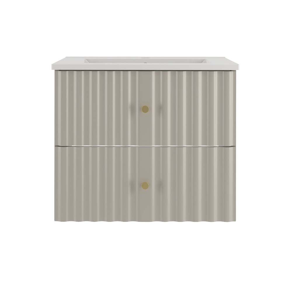 Einzelwaschtisch 60cm Izae KaschmirKollektion :: Izae Europäische Herstellung Materialien : Front aus 18 mm MDF-PlattenKorpus aus 16 mm LaminatplattenFSC-zertifiziertes Holz aus nachhaltiger ForstwirtschaftKeramikwaschbeckenMetallgriff Farbe : Kaschmir und goldene Griffe Die Farbe auf dem Foto kann je nach den Einstellungen Ihres Bildschirms (Kontrast, Helligkeit) variieren. Eigenschaften: Hängeschrank2 SchubladenGeräuscharmes SchließsystemInklusive WaschbeckenAbflussdurchmesser: 45 mmWandbefestigung: inkl. Schrauben und DübelEs wird jedoch empfohlen, Ihre Befestigungen an Ihren Untergrund anzupassen. Weitere Informationen : Spiegel nicht inbegriffenArmaturen nicht inbegriffenFreier Abfluss nicht inbegriffenSiphon nicht inbegriffen Gewicht : Waschtischunterschrank: 17 kgWaschbecken: 14,5 kg Abmessungen : Waschtischunterschrank: 60 x 45,8 x 50 cmWaschbecken: 61,5 x 47 x 15 cm Die angegebenen Maße können um einige Millimeter abweichen Installationshinweise: Dieses Möbelstück ist für die Installation mit Wasserzuführungen von der Wand aus gedacht. Pflegetipps: Für ausreichende Belüftung und eine funktionierende Lüftungsanlage sorgenKanten, die Wasser ausgesetzt sind, mit Silikon versiegelnDas Innere von Möbeln nicht der Feuchtigkeit (Wasser, Wasserdampf) aussetzen Sicherheitshinweise: Für gute Belüftung im Badezimmer sorgenDas Möbelstück sicher an der Wand befestigenDie in den Anleitungen angegebenen empfohlenen Höchstlasten beachten Verpackung : Produkt wird zur Montage geliefert, inkl. Anleitung Produktgarantie: 24 Monate Gesamtanzahl der Kartons : 2 Gewicht und Abmessungen der Kartons: 17 kg / 67 x 48 x 14 cm14,5 kg / 76 cm x 57 x 25 cm Gesetzlicher Vertreter: NAPKINS, 30/34 avenue Henri Matisse, 06200 Nizza, Frankreich