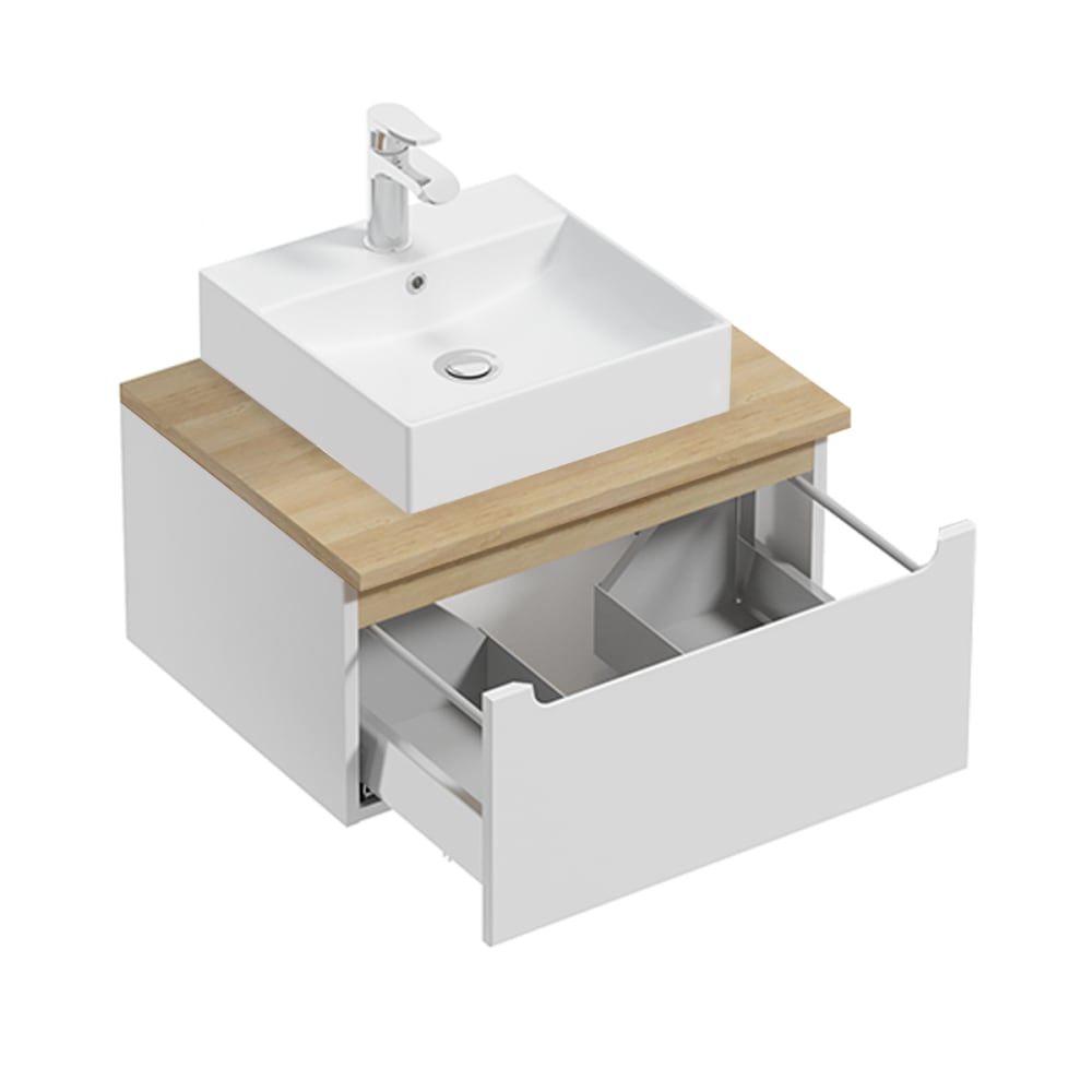 Waschtisch 60cm 1 Schublade Livia Weiß und HolzKollektion :: Livia Europäische Herstellung Materialien : Front aus MDF-PlattenKorpus und Griff aus melaminharzbeschichteten PlattenWaschtisch aus Laminatplatten70% FSC-zertifiziertes Holz aus nachhaltiger ForstwirtschaftWaschbecken aus Keramik Farbe : Weiß lackiert3 Grifffarben: Buche, Schwarzholz und Weiß lackiert InklusiveWaschtisch aus Holz in BuchenoptikWaschbecken Weiß lackiert Eigenschaften: Hängeschrank1 SchubladeGeräuscharmes SchließsystemAufsatzwaschbecken InklusiveWaschtisch InklusiveBefestigungen zwischen Waschtisch und Möbel: Winkel und Schrauben Nicht inbegriffenWandbefestigungen: Haken, Schrauben und Dübel Nicht inbegriffenDieses Möbelstück gibt es in 4 Größen: 60 cm, 80 cm, 90 cm und 120 cm. Hinweise: Vergewissern Sie sich vor der Montage, dass die gekauften Haken, Schrauben und Dübel für Ihre Wand geeignet sind. Bitte stellen Sie auch sicher, dass die Wand das Möbelstück dauerhaft tragen kann.Die empfohlenen Maße für Haken und Schrauben sind in der Montageanleitung angegeben. Weitere Informationen : Spiegel Nicht im Lieferumfang enthaltenArmaturen Nicht im Lieferumfang enthaltenFreier Auslauf Nicht im Lieferumfang enthaltenPlatzsparender Siphon Nicht im Lieferumfang enthaltenWaschtischplatte nicht gebohrt Gewicht : Waschtischunterschrank: 24 kgWaschbecken: 8 kg Abmessungen : Waschtischunterschrank: 60 x 46 x 32,5 cmWaschbecken: 40 x 40 x 10 cm Die angegebenen Maße können um einige Millimeter abweichen. Verpackung : Produkt wird geliefert, muss zusammengebaut werden, inkl. Anleitung. Produkt mit 24-monatiger Garantie. Gesamtanzahl der Kartons : 3 Gewicht und Abmessungen der Kartons: 14 kg69,6 x 44,4 x 10,1 cm / 10 kg73,6 x 47 x 38 cm / 8,65 kg45 x 45 x 16 cm