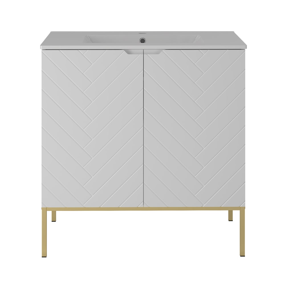 Einzelner Waschtisch mit 80cm Einbauwaschbecken auf Füßen Daria WeißKollektion :: Daria Europäische Herstellung Materialien : Front aus 18 mm MDF-PlattenKorpus aus 16 mm LaminatplattenFSC-zertifiziertes Holz aus nachhaltiger ForstwirtschaftMetallfüßeKeramikwaschbecken Farbe : Weiß und goldene Füße Die Farbe auf dem Foto kann je nach den Einstellungen Ihres Bildschirms (Kontrast, Helligkeit) variieren. Eigenschaften: Aufsatzmöbel2 Türen1 RegalGeräuscharmes SchließsystemInklusive WaschbeckenWandbefestigungen: Schrauben und Dübel inklusiveEs wird jedoch empfohlen, Ihre Befestigungen an Ihren Untergrund anzupassen. Weitere Informationen : Spiegel nicht inbegriffenArmaturen nicht inbegriffenFreier Abfluss nicht inbegriffenSiphon nicht inbegriffen Gewicht : Waschtischunterschrank: 28 kgWaschbecken: 14 kg Abmessungen : Waschtischunterschrank: 80 x 45,8 x 82 cmWaschbecken: 81,5 x 47 x 17 cm Die angegebenen Maße können um einige Millimeter abweichen Installationshinweise: Dieses Möbelstück ist für die Installation mit Wasserzuführungen von der Wand aus gedacht. Pflegetipps: Für ausreichende Belüftung und eine funktionierende Lüftungsanlage sorgenKanten, die Wasser ausgesetzt sind, mit Silikon versiegelnDas Innere von Möbeln nicht der Feuchtigkeit (Wasser, Wasserdampf) aussetzen Sicherheitshinweise: Für gute Belüftung im Badezimmer sorgenDas Möbelstück sicher an der Wand befestigenDie in den Anleitungen angegebenen empfohlenen Höchstlasten beachten Verpackung : Produkt wird zur Montage geliefert, inkl. Anleitung Produktgarantie: 24 Monate Gesamtanzahl der Kartons : 3 Gewicht und Abmessungen der Kartons: 26 kg / 84 x 48 x 14 cm2 kg / 80 x 21 x 3 cm14,3 kg / 72 x 54 x 23 cm Gesetzlicher Vertreter: NAPKINS, 30/34 avenue Henri Matisse, 06200 Nizza, Frankreich