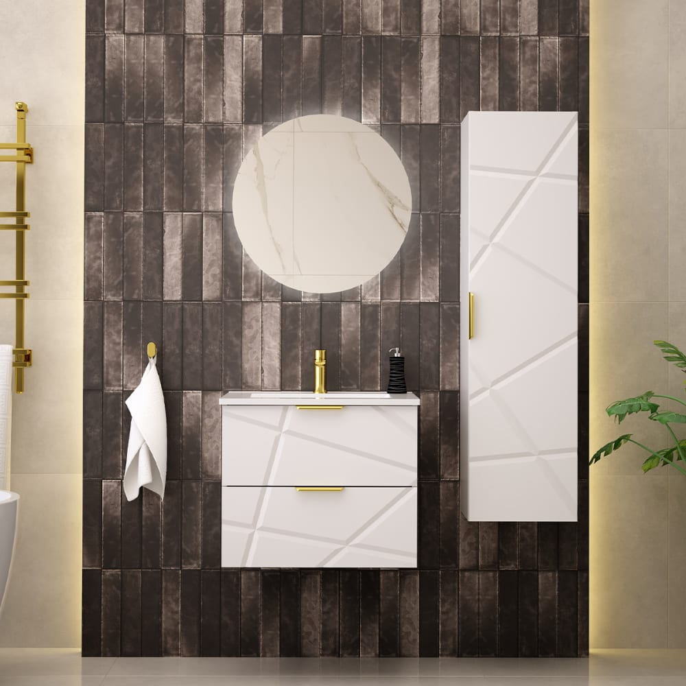Set aus Einzelmöbel, Einbauwaschbecken 60cm und Säule Aurora WeißKollektion :: Aurora Europäische Herstellung Materialien : Front aus 18 mm MDF-PlattenKorpus aus 16 mm LaminatplattenFSC-zertifiziertes Holz aus nachhaltiger ForstwirtschaftKeramikwaschbeckenMetallgriffe Farbe : Weiß und goldene Griffe Eigenschaften: Waschtisch : Hängeschrank2 SchubladenGeräuscharmes SchließsystemEinbauwaschbecken InklusiveAbflussdurchmesser: 45 mmWandbefestigungen: Schrauben und Dübel InklusiveEs wird jedoch empfohlen, Ihre Befestigungen an den Untergrund anzupassen. Features : Colonne : Hängemöbel1 umkehrbare Schiebetür (links oder rechts zu öffnen)4 Regalböden Geräuscharmes SchließsystemWandbefestigungen: Schrauben und Dübel InklusiveEs wird jedoch empfohlen, Ihre Befestigungen an Ihren Untergrund anzupassen. Weitere Informationen : Spiegel Nicht im Lieferumfang enthaltenArmaturen Nicht im Lieferumfang enthaltenFreier Abfluss Nicht im Lieferumfang enthaltenSiphon Nicht im Lieferumfang enthalten Gewicht : Waschtischunterschrank: 17 kgWaschbecken: 14,5 kgSäule: 23 kg Maße: Waschtischunterschrank: 60 x 45,8 x 50 cmWaschbecken: 61,5 x 47 x 15 cmSäule: 34,5 x 31,8 x 130 cm Die angegebenen Maße können um einige Millimeter abweichen Sicherheitshinweise: Befestigen Sie das Möbelstück sicher an der WandBeachten Sie die empfohlenen Höchstlasten, die in den Anleitungen angegeben sind. Verpackung : Produkt wird zur Montage geliefert, inkl. Anleitung Produkt mit 24-Monats-Garantie Gesamtanzahl der Kartons : 3 Gewicht und Abmessungen der Kartons: 17 kg67 x 48 x 14 cm / 14,5 kg76 cm x 57 x 25 cm / 23 kg137 x 36 x 9 cm Gesetzlicher Vertreter: NAPKINS, 30-34 avenue Henri Matisse, 06200 Nizza, FRANKREICH