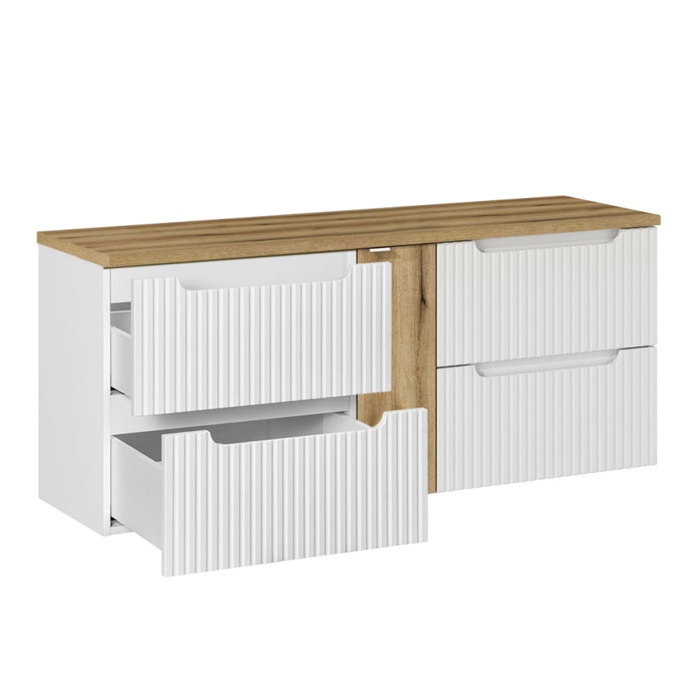 Waschtischunterschrank mit 4 Schubladen, Weiß und Holzoptik, 140.4cm von Petits meubles