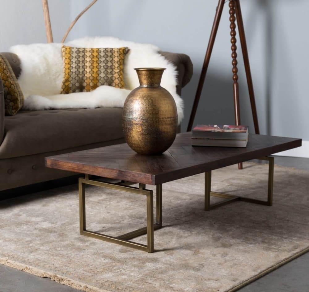 Wohnzimmer-Couchtisch aus Akazienholz und Messing von Dutchbone