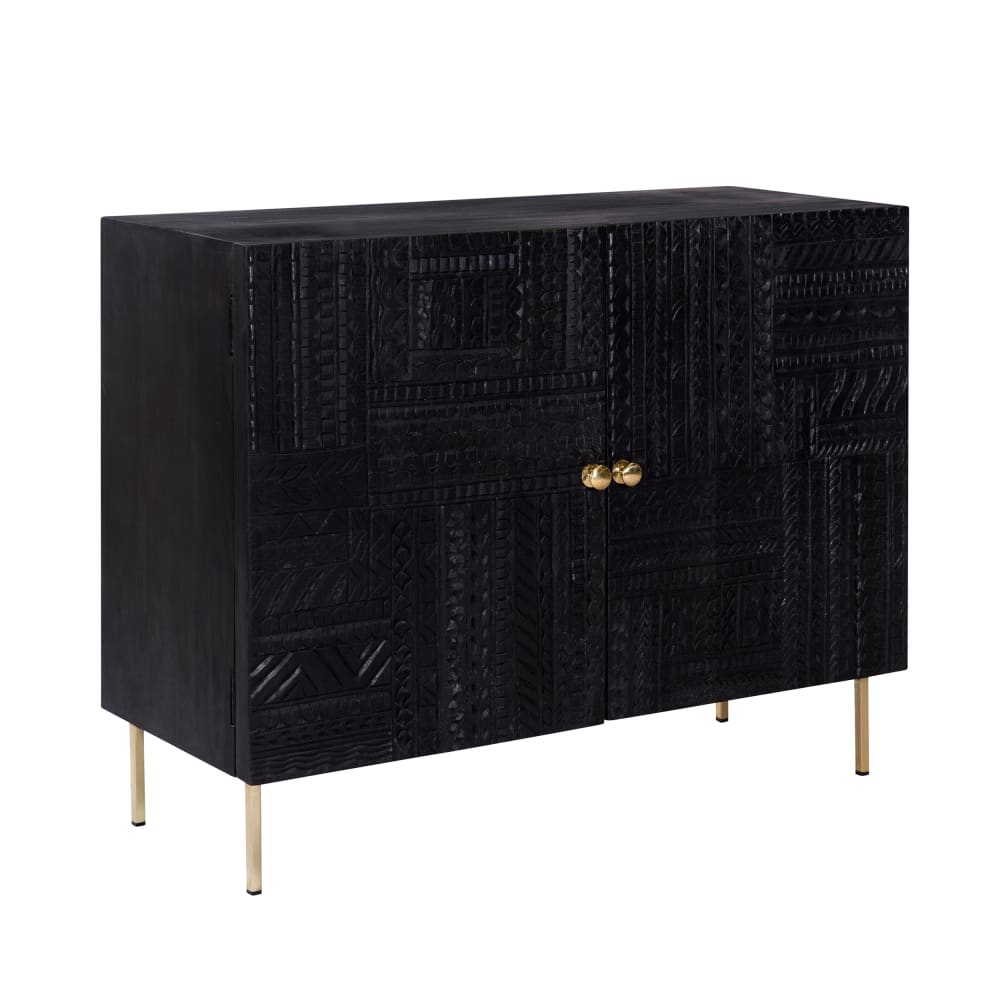 Zweitürige Kommode aus schwarz graviertem Holz und vergoldetem Metall von Rendez-Vous Déco