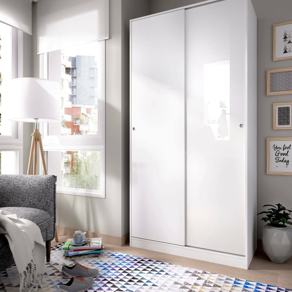 KLEIDERSCHRANK 2 TÜREN – Kleiderbügel für Schlafzimmer, Mehrzweckschrank, 100x50h204 cm, Weiß. AUFBAU UND NUTZUNG – Multifunktionaler Kleiderschrank mit zwei Schiebetüren mit Kleiderhaken und Regal – Dank der internen Organisation seiner Räume bietet er viel Stauraum – Die gesamte Struktur der Möbel eignet sich perfekt für die Einrichtung eines Schlafzimmers in einem geräumigen Raum Sparen Sie Platz für ein Schlafzimmer mit Doppelbett, ein Kinderzimmer oder ein Gästezimmer – das interne Regal in Kombination mit der Kleiderbügelstange ermöglicht es Ihnen, Kleidung und Kleidungsstücke ordentlich aufzubewahren. QUALITÄT UND DESIGN – Modernes und elegantes Design-Möbelstück, perfekt für die Einrichtung einer zeitgemäßen und hellen Umgebung – Ideal für alle, die nach Funktionalität und platzsparenden Lösungen suchen, ist dieses Produkt perfekt für Häuser und Wohnungen aller Größen – Zwei Jahre Garantie ab Kaufdatum. TECHNISCHE EIGENSCHAFTEN – Vollständig aus melaminbeschichteten Spanplatten gefertigt, stoß- und kratzfest sowie langlebig – Schnelle und einfache Reinigung dank des Materials, aus dem es gefertigt ist – MDF-Schubladen mit Textilbeschichtung innen und ABS Geräusch- und kratzfeste Stollen für den unteren Teil des Möbels – Kanten mit Melaminbeschichtung – Rückseite des Möbels aus Faserplatte mittlerer Dichte – Klassifizierung nach Gehalt oder Freisetzung von Formaldehyd TYP E1 – Lieferung zerlegt mit Montagesatz und Anleitung Broschüre – Besondere Sorgfalt und Aufmerksamkeit auf die Verpackung, die widerstandsfähig und für den Transport geeignet ist. ABMESSUNGEN IN CM – Kleiderschrank: Länge: 100, Breite: 50, Höhe: 204
